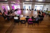 - No espetáculo, tubos coloridos se transformam em brinquedos, bonecos e instrumentos musicais. Neste espaço, as personagens Tum Tum (Andressa Medeiros) e Pompom (Taciane Vieira) convidam o público a entrar em um jogo de achar, esconder e descobrir sons, formas e movimentos.