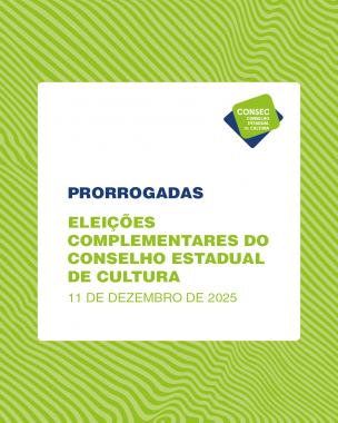 13:48 Eleições para o Conselho Estadual de Cultura são prorrogadas O prazo para votar nas eleições complementares para o Conselho Estadual de Cultura (CONSEC) – Biênio 2025-2027 foi prorrogado. A votação, que acontece pelo sistema SIC.Cultura e teve início hoje (10), seguirá até amanhã (11), às 12 horas.