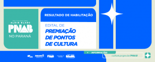 18:22 PNAB: confira o resultado de habilitação do Edital 006/2024 Premiação de Pontos de Cultura A Secretaria de Estado da Cultura do Paraná divulga nesta quarta-feira (27) o resultado da fase de habilitação do Edital 006/2024 Premiação de Pontos de Cultura da Política Nacional Aldir Blanc de Fomento à Cultura (PNAB).