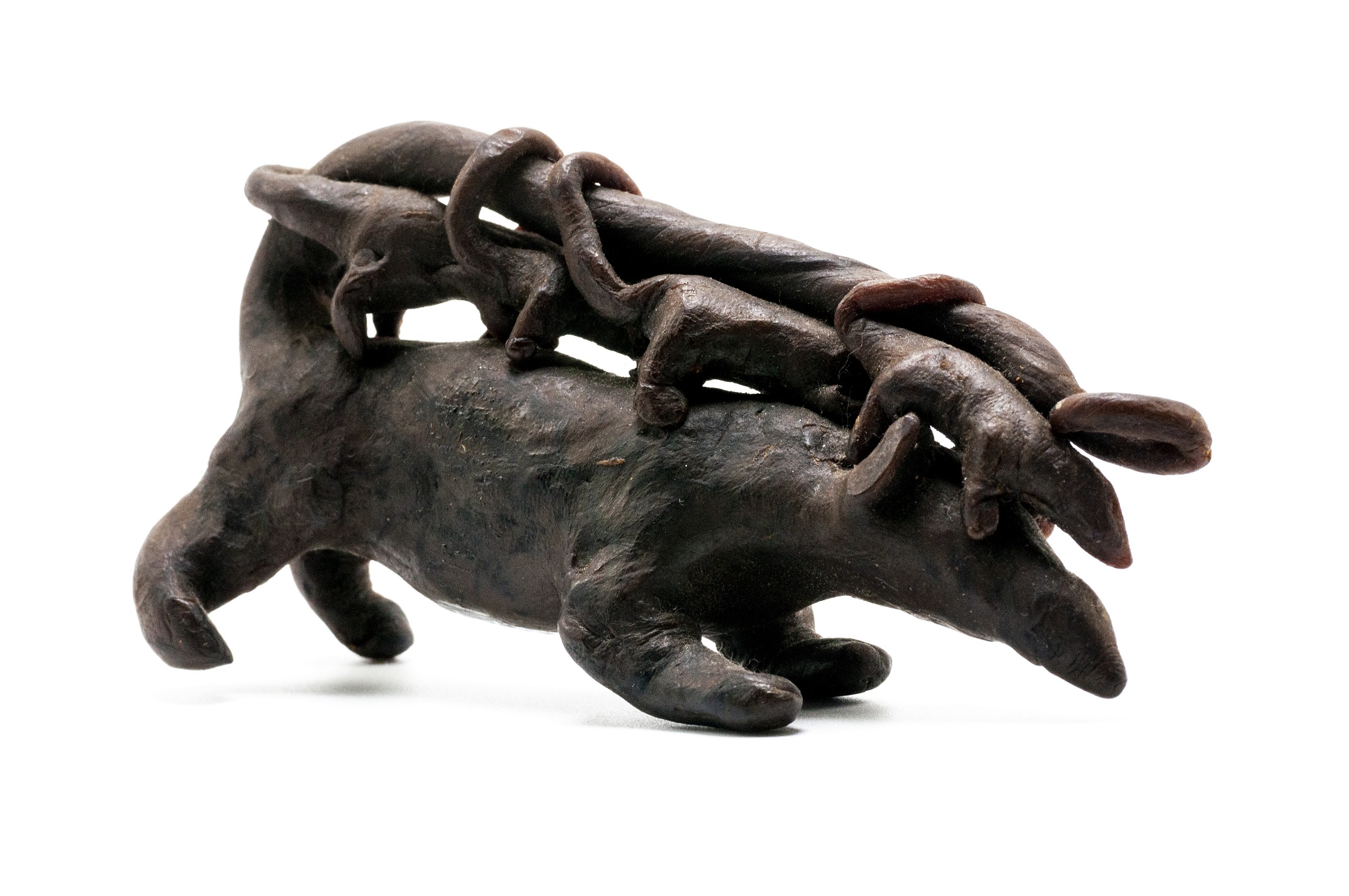 Kadjaj (Gambá com filhotes). Escultura em cerume de abelha. Etnia Xetá - Paraná/Brasil.Década de 1950. Coleção Vladimir Kozák. Foto Amanda Sanches/MUPA.