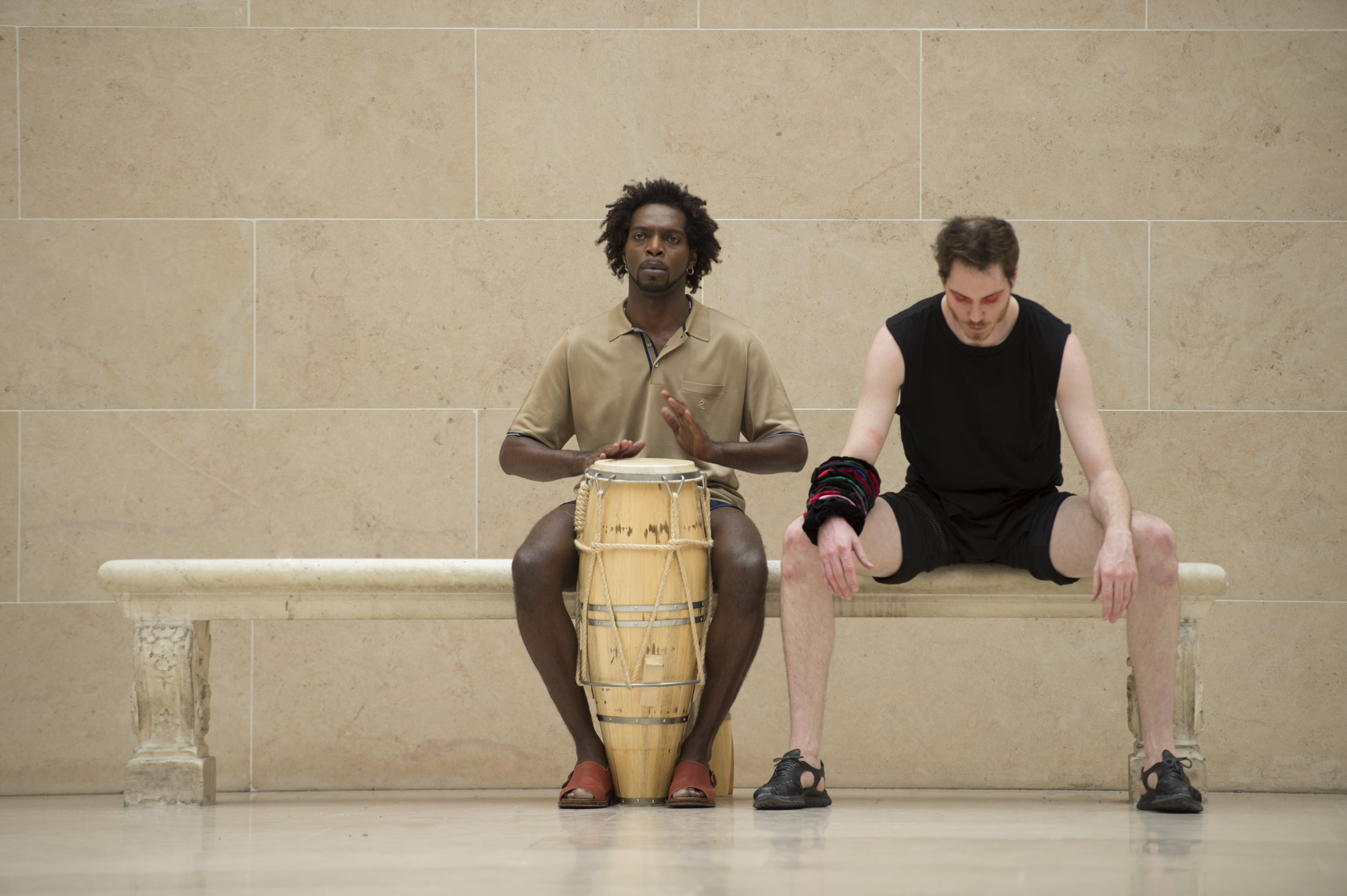 O bailarino Volmir Cordeiro e o músico Washington Timbó em cena da performance Rua.