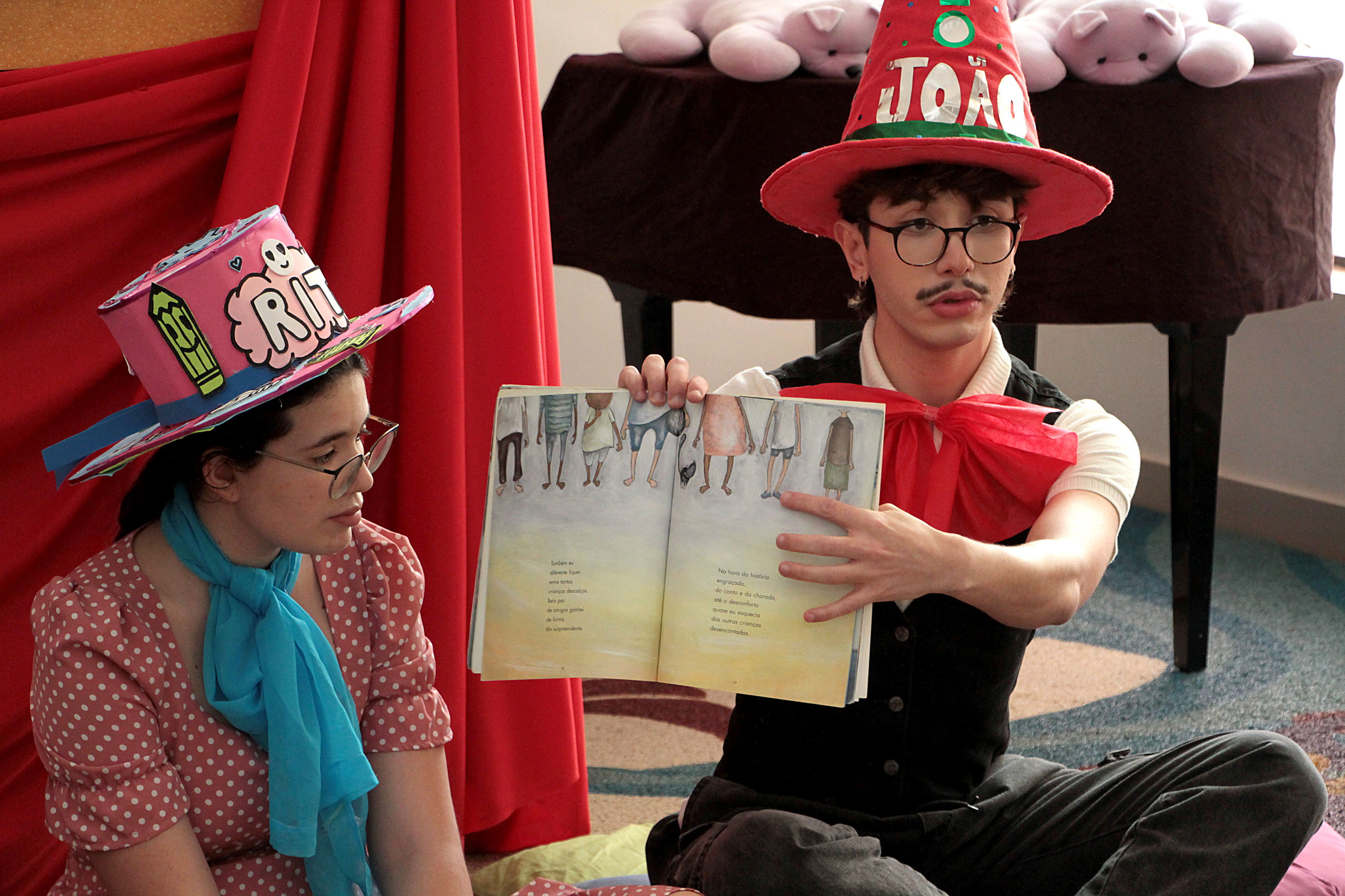 Contação da história “A Bruxa do batom borrado”, de Anderson Novello, para crianças.