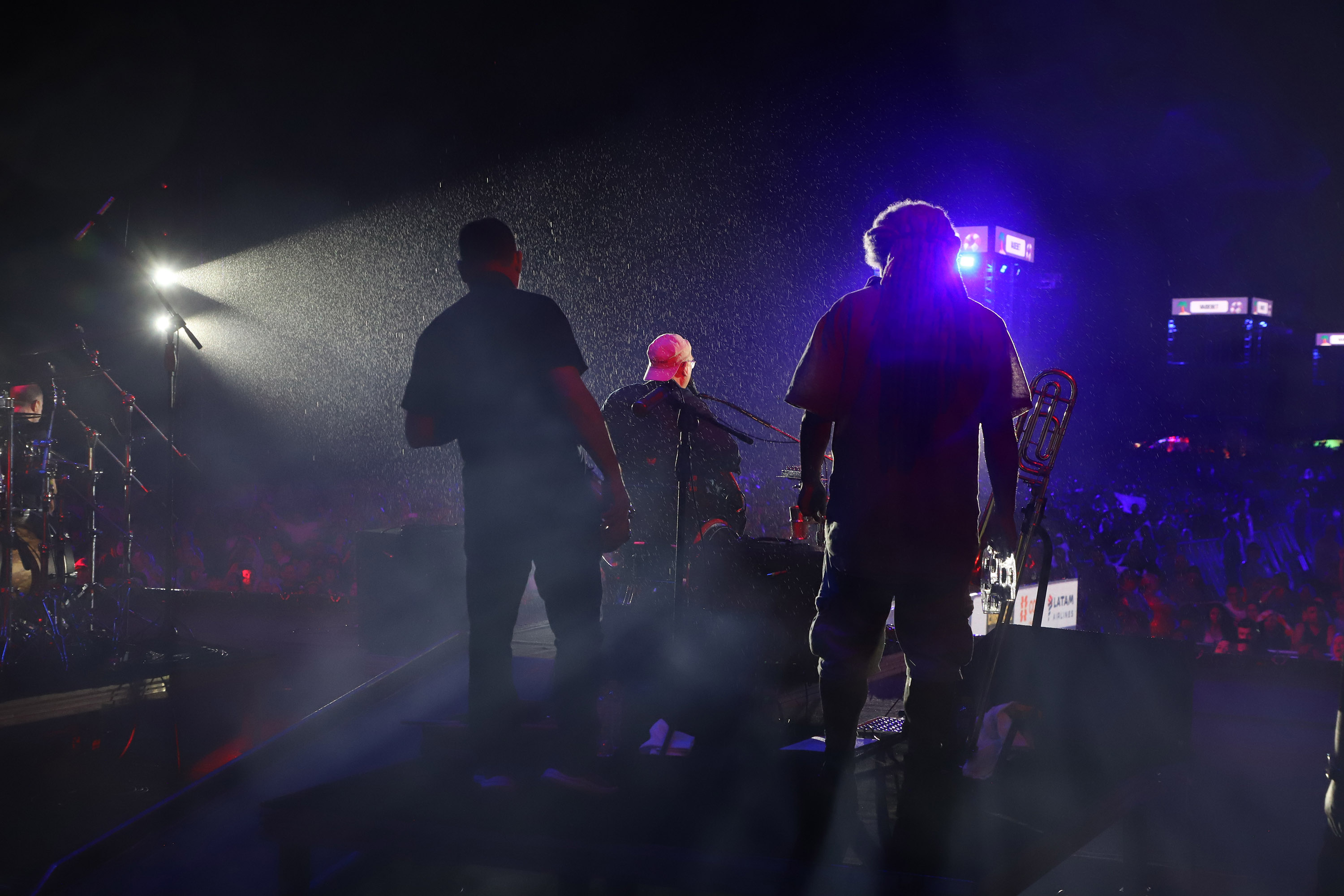 Com tranquilidade e respeito ao público, o vocalista explicou a situação. “Com mil perdões, rapaziada, não foi deslumbre ou estrelismo da gente. É porque eletrônica e água são completamente incompatíveis. Além do risco de choque, começa a falhar tudo. Vamos aguardar um pouco pra ver se melhora", avisou.
