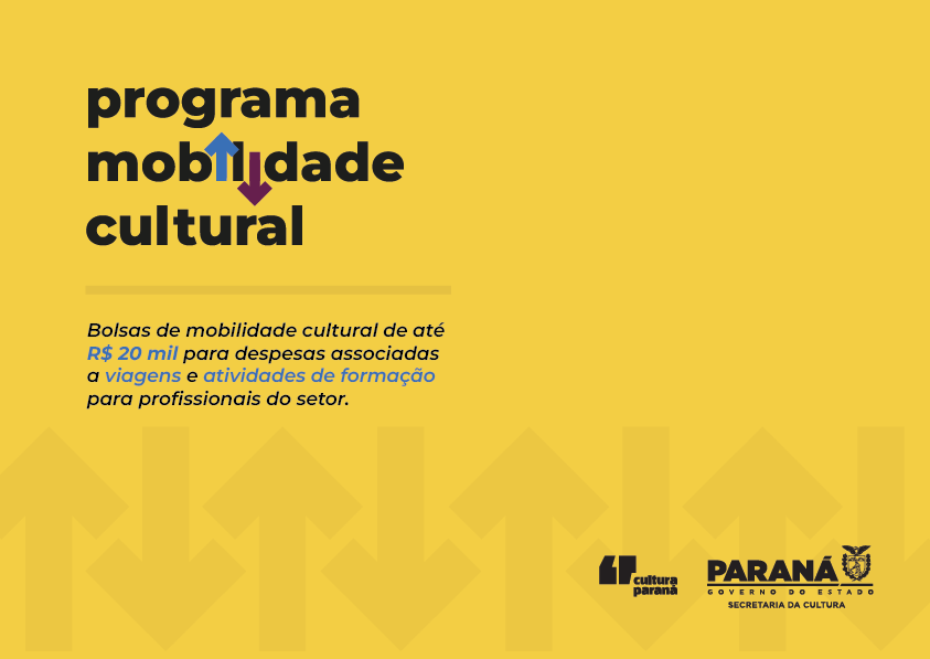Inédito no Estado, o programa funcionará em fluxo contínuo, sem data de encerramento. Serão concedidas bolsas de mobilidade artística e cultural para profissionais do setor cultural paranaense que necessitam de apoio financeiro para, por exemplo, participar de eventos, apresentar seus trabalhos em festivais, premiações, feiras e realizar cursos de qualificação. Os projetos desclassificados ou não selecionados devem ser inscritos novamente caso queiram participar da seleção nos próximos bimestres.