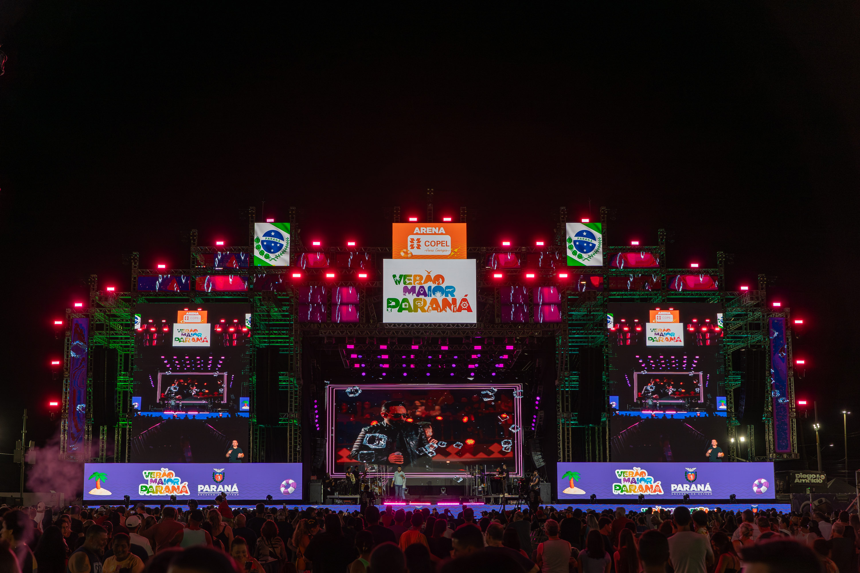 O último fim de semana de shows do Verão Maior Paraná em Pontal do Paraná começou nesta sexta-feira (6) com uma mistura de ritmos e público no Centro de Eventos Marissol. Diego & Arnaldo subiram ao palco por volta das 20 horas, reunindo cerca de 30 mil moradores e turistas em uma apresentação gratuita que abriu a programação da reta final da maior edição do festival já realizada no Litoral do Estado.