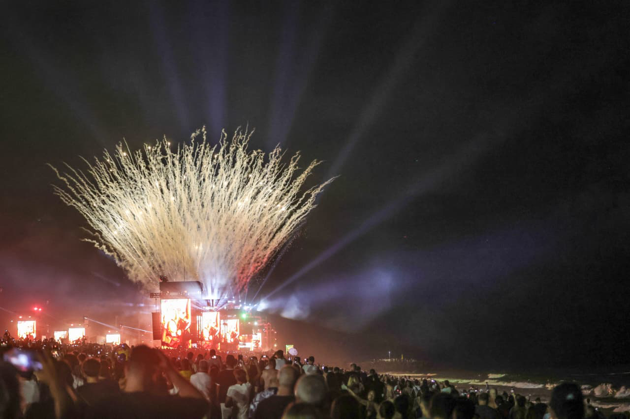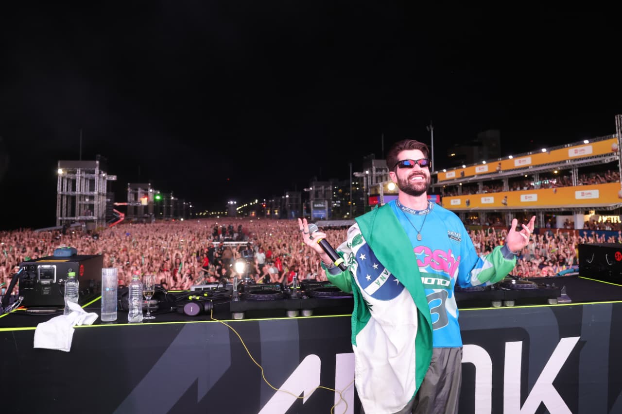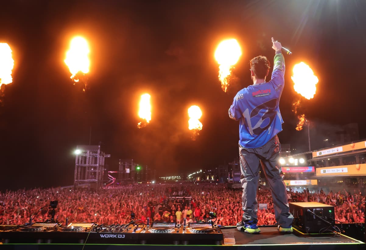 A música Fuego, um dos seus hits, abriu o setlist do show e combinou com a noite quente que fez na praia. O público, formado por pessoas de todas as idades – sendo que algumas delas chegaram a madrugar para ver de perto o ídolo – não parou de dançar com os remixes de grandes sucessos, desde Tim Maia até Black Eyed Peas, e sons autorais do DJ.