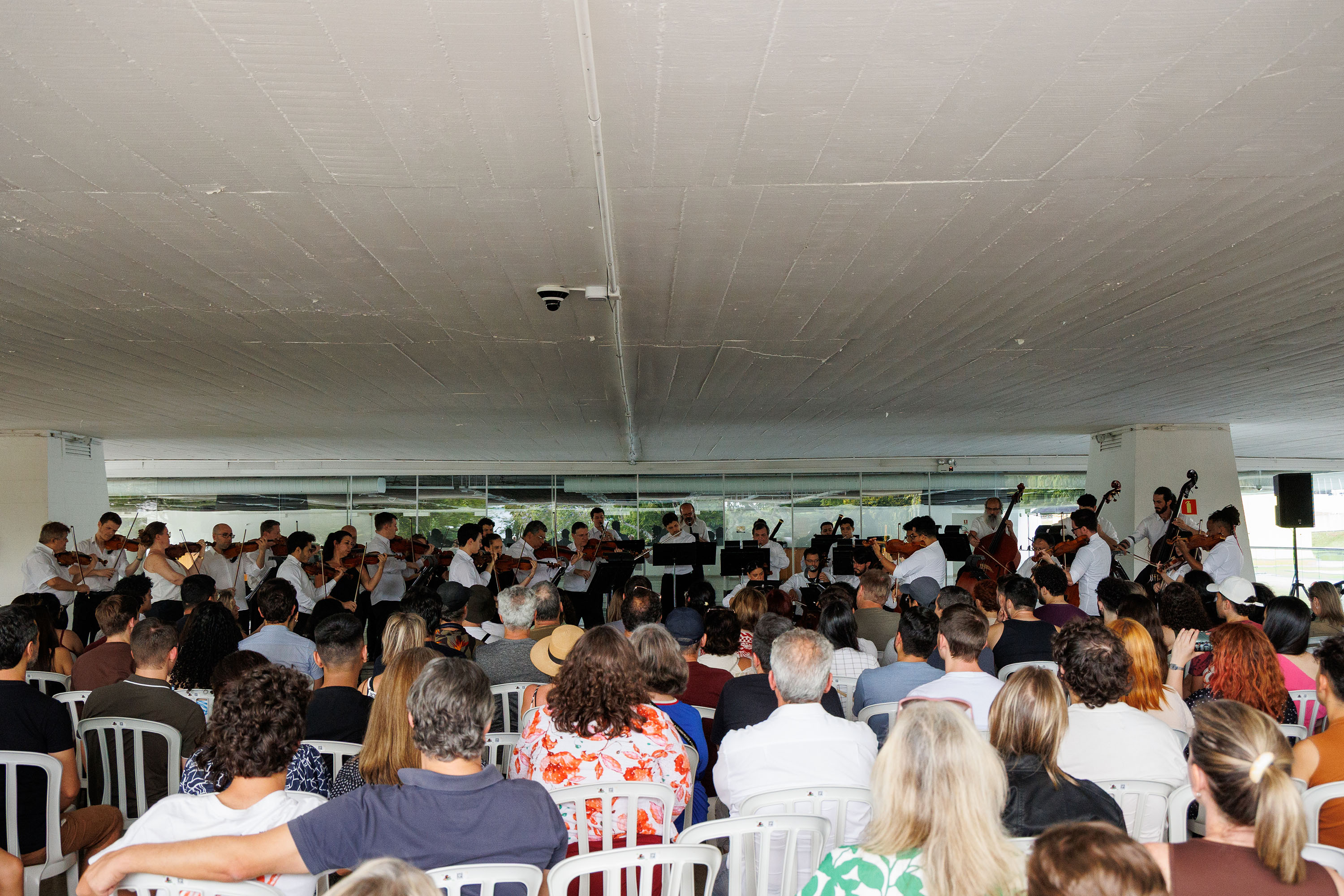 Os acordes de algumas das composições mais célebres de Wolfgang Amadeus Mozart ecoaram pelo vão-livre do Museu Oscar Niemeyer (MON) na tarde deste sábado (6), em Curitiba, durante a última apresentação da série “Mostly Mozart”. O projeto levou ao maior museu do Paraná seis concertos gratuitos da Orquestra Sinfônica do Paraná (OSP) ao longo de 2025, como parte da programação especial que celebrou os 40 anos da orquestra.