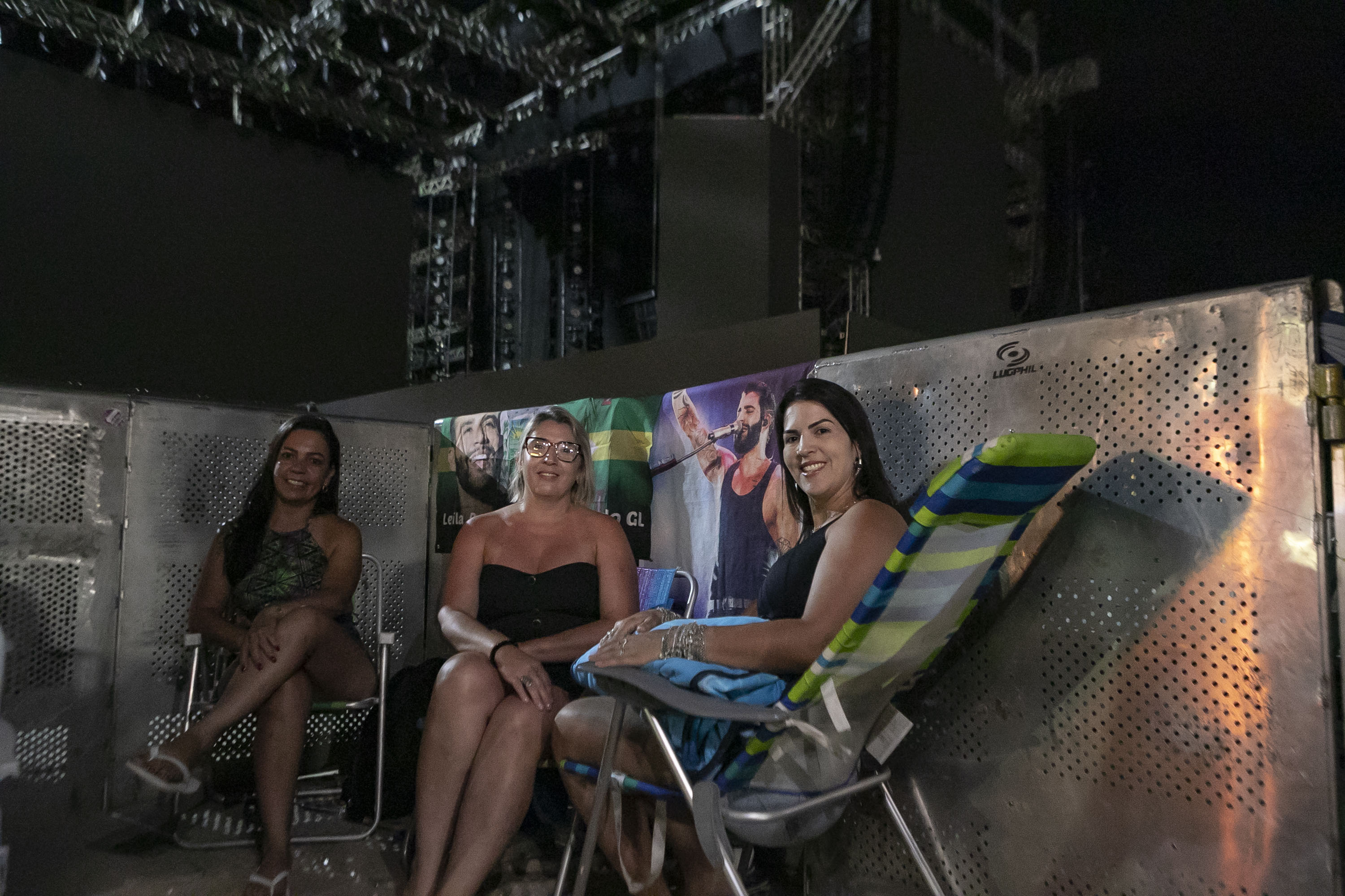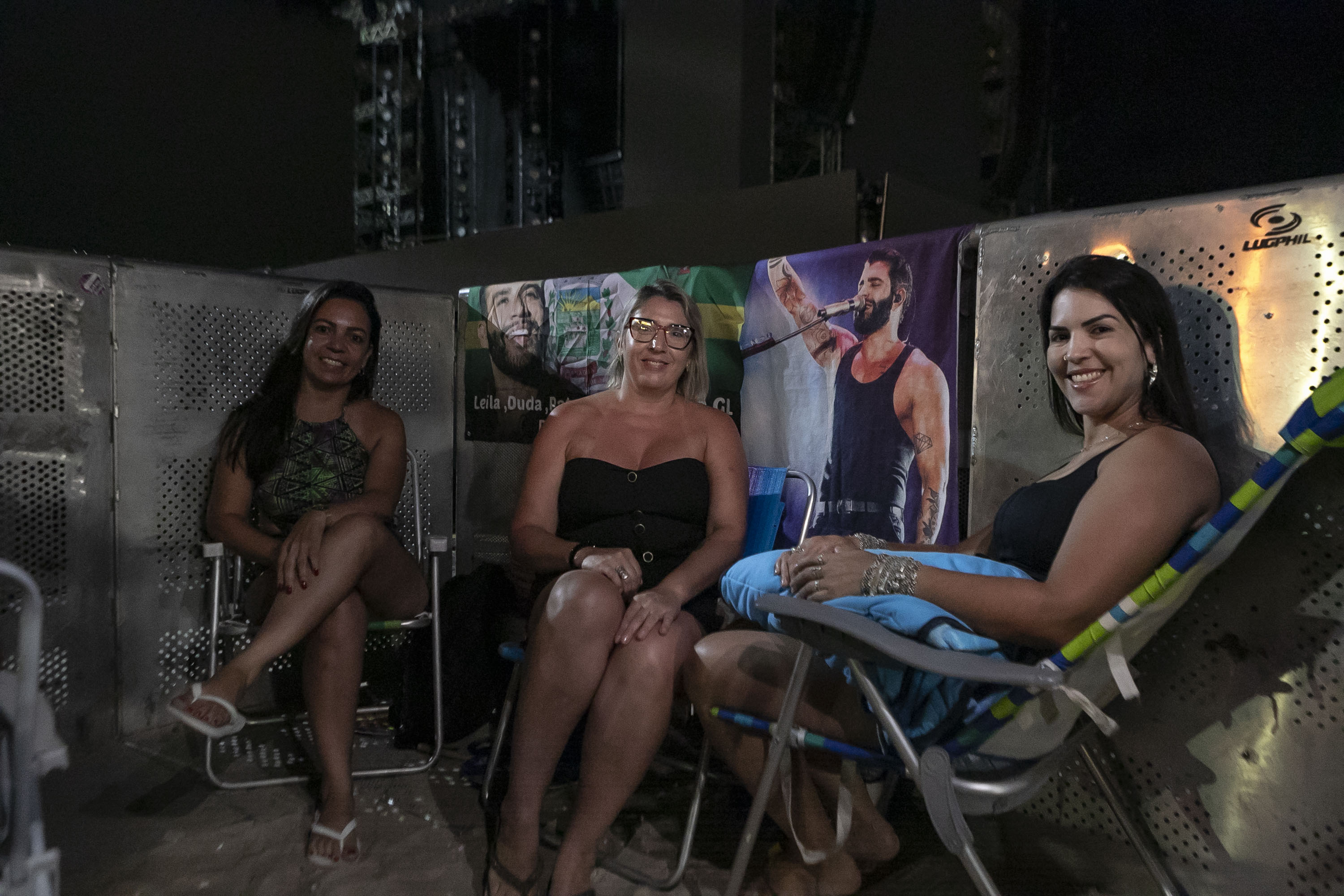 Teve gente, porém, que chegou ainda mais cedo. Rafaela Bento, 25 anos, é de Curitiba e está na praia desde as 9h30. “Na hora que abriram os portões, eu já estava aqui. E o meu objetivo é tirar uma foto com o ídolo da minha vida. Na verdade, o Gusttavo é mais do que um ídolo, ele é parte da minha família. É o amor da minha vida, é a minha outra metade”, afirmou. “Eu vim só com a mochila e um sonho. Não tenho colchonete, nem nada. As meninas me emprestaram umas cadeiras porque eu ia dormir direto na areia”.