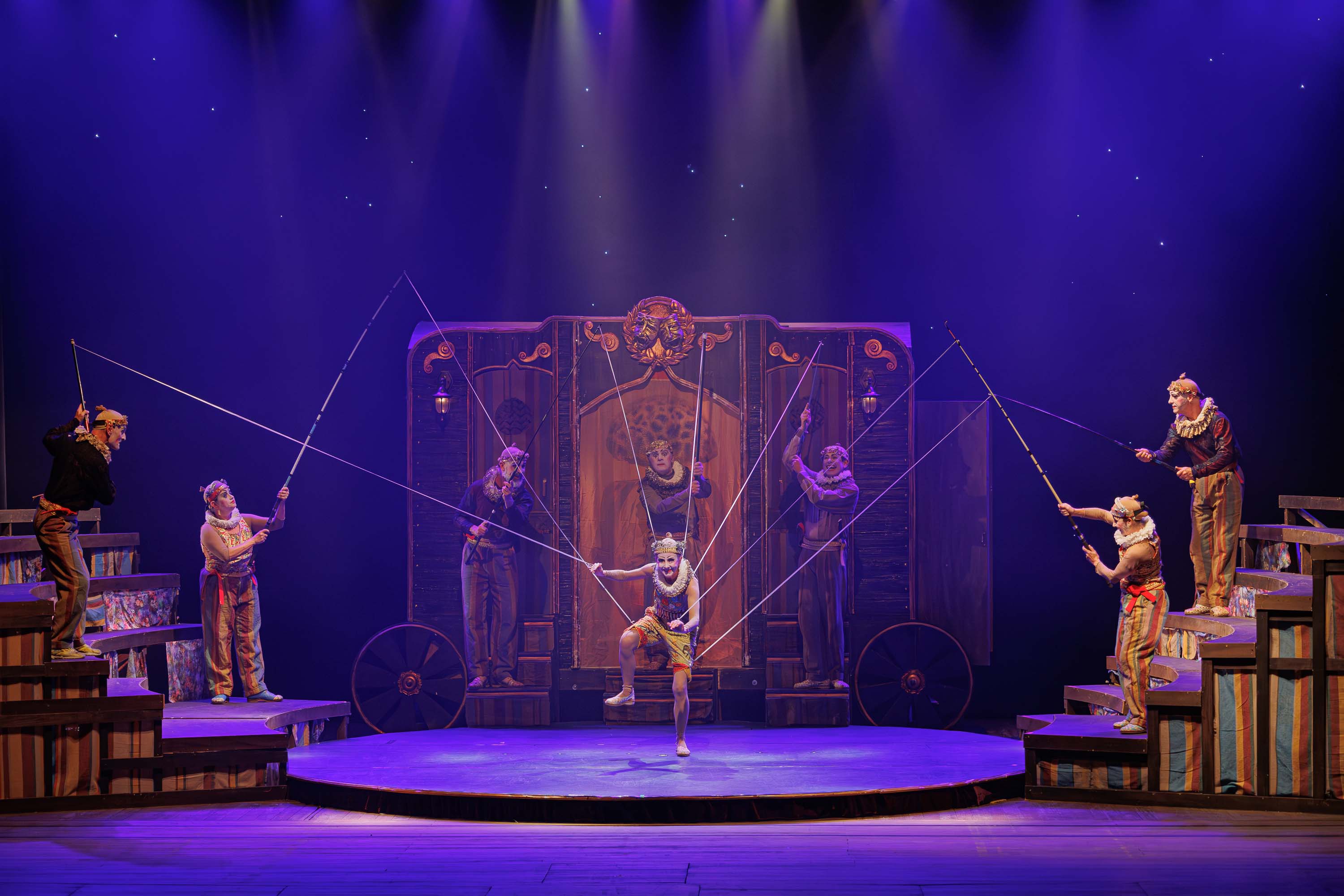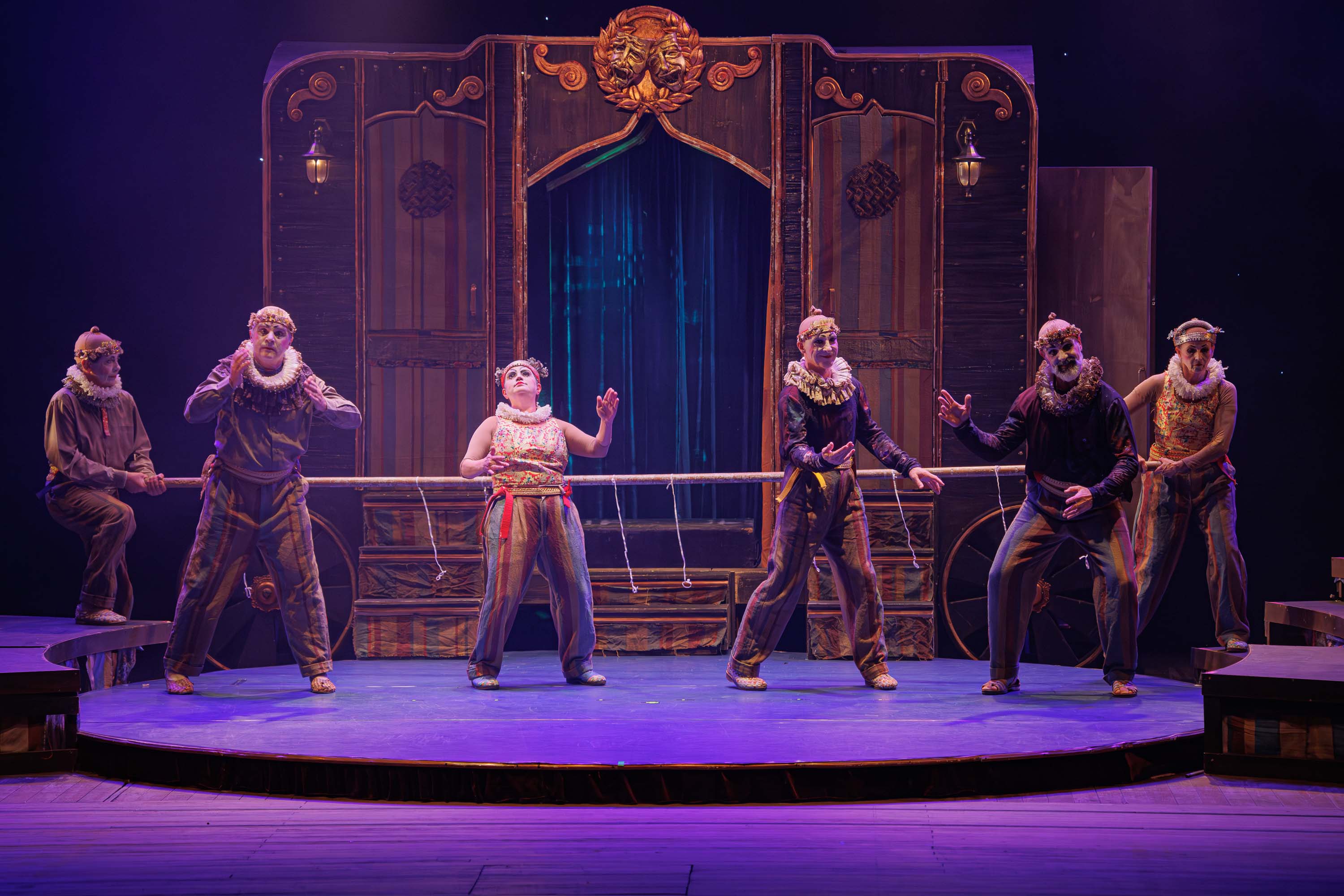 Livremente inspirado no ensaio “Sobre o Teatro de Marionetes”, de Heinrich von Kleist, o espetáculo também dialoga com as gags (esquetes humorísticas do universo circense) e com a peça “Os Gigantes da Montanha”, de Luigi Pirandello. Em cena, os bailarinos transitam entre o humano e o fantasmagórico, incorporando a metáfora das marionetes para refletir sobre a condição existencial do homem.