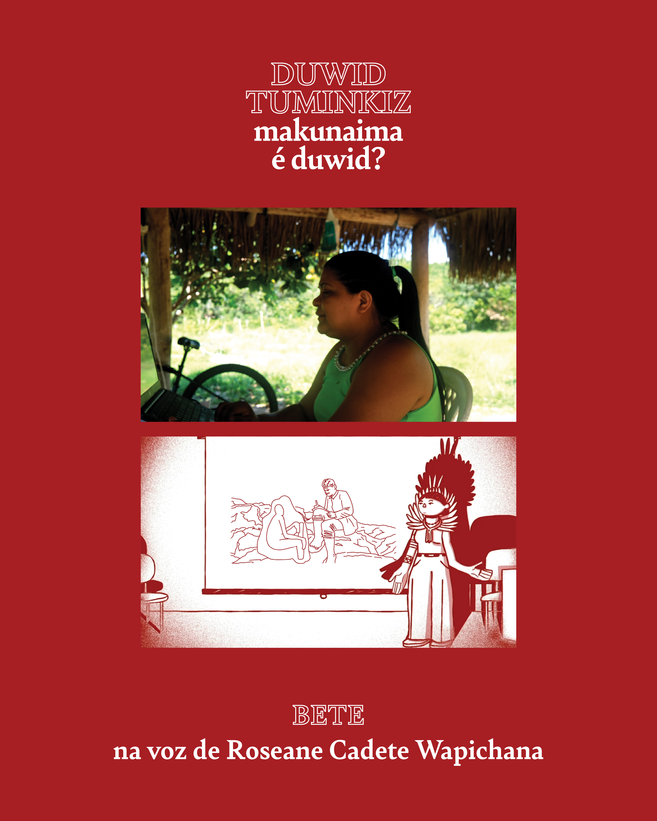 “Makunaima é Duwid?” é um curta de animação dirigido pelo artista wapichana Gustavo Caboco, realizado em 2025. A partir da pergunta que dá título à obra, o artista provoca a partir do território Wapichana Canauanim, na Serra da Lua (Roraima), a refletirem sobre o personagem Macunaíma, figura central do imaginário nacional, e suas relações com as narrativas indígenas originárias.
