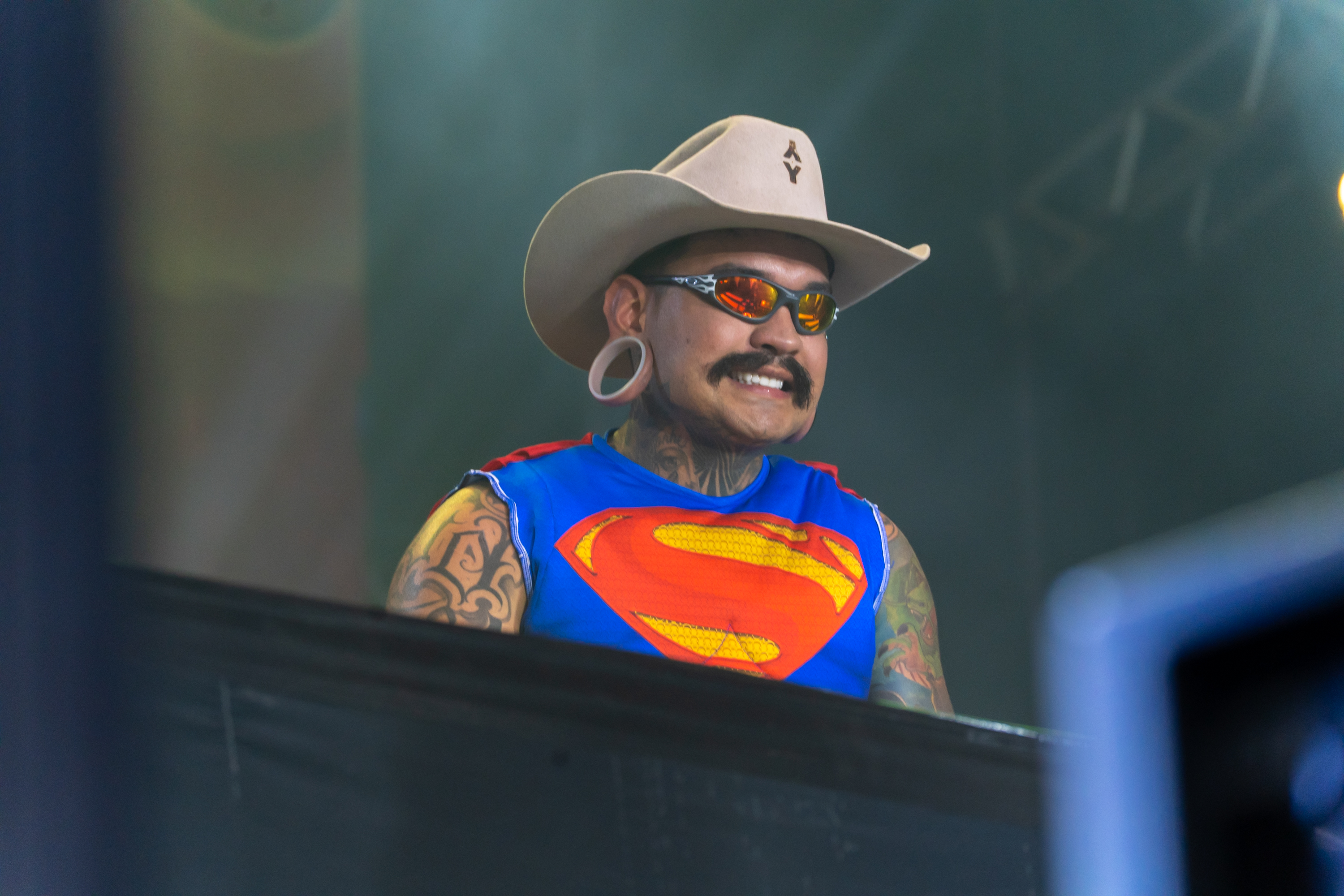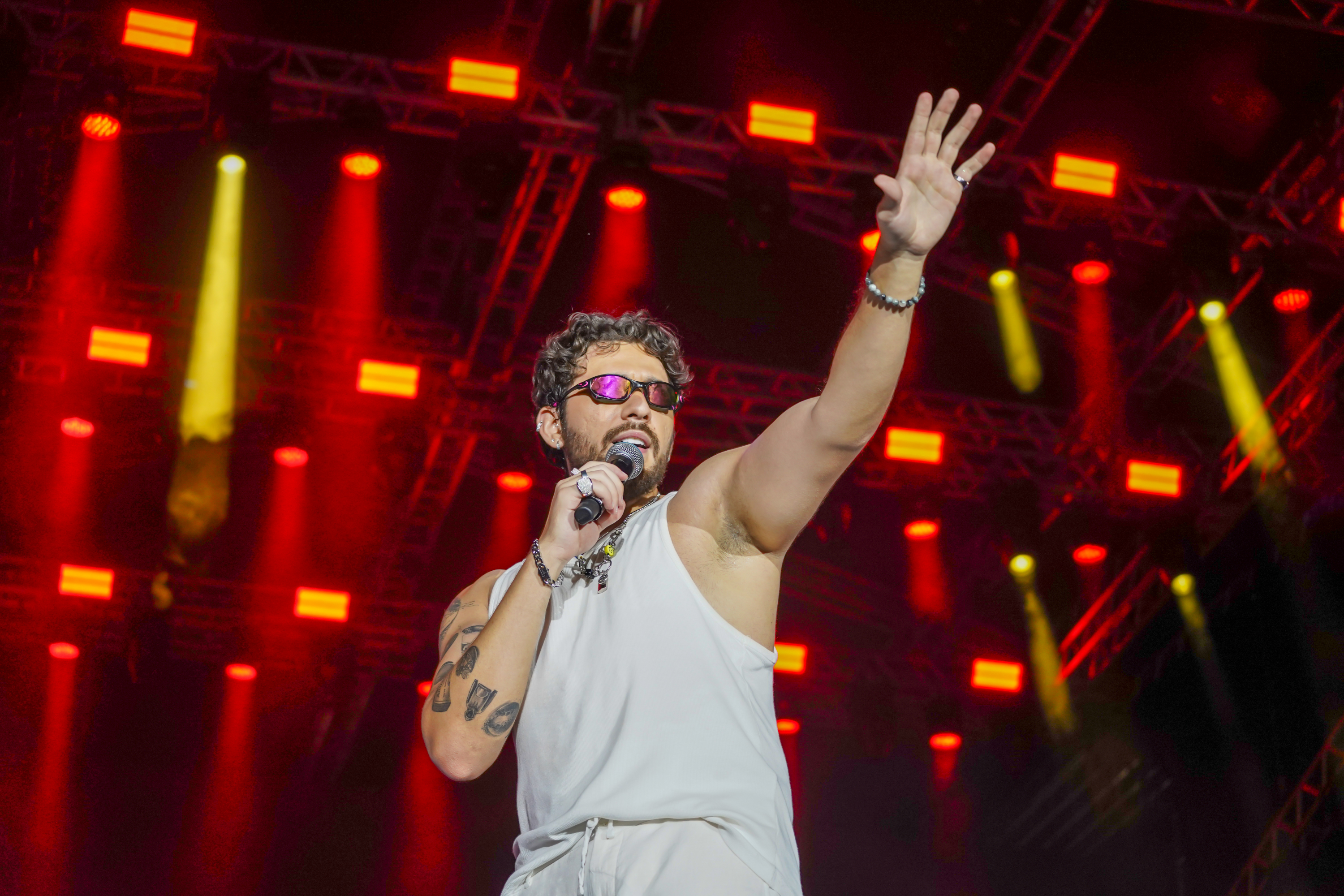 Ao chegar para o evento, contou que fez questão de ver como tudo estava do lado de fora. “Eu pedi para parar a van porque eu queria ver a estrutura. Olha, coisa de doido. E esse som? Tá tremendo tudo. O pessoal vai dançar e tremer tudo isso daqui”, comentou, citando os efeitos da música de aquecimento para o show nas paredes e chão do camarim.