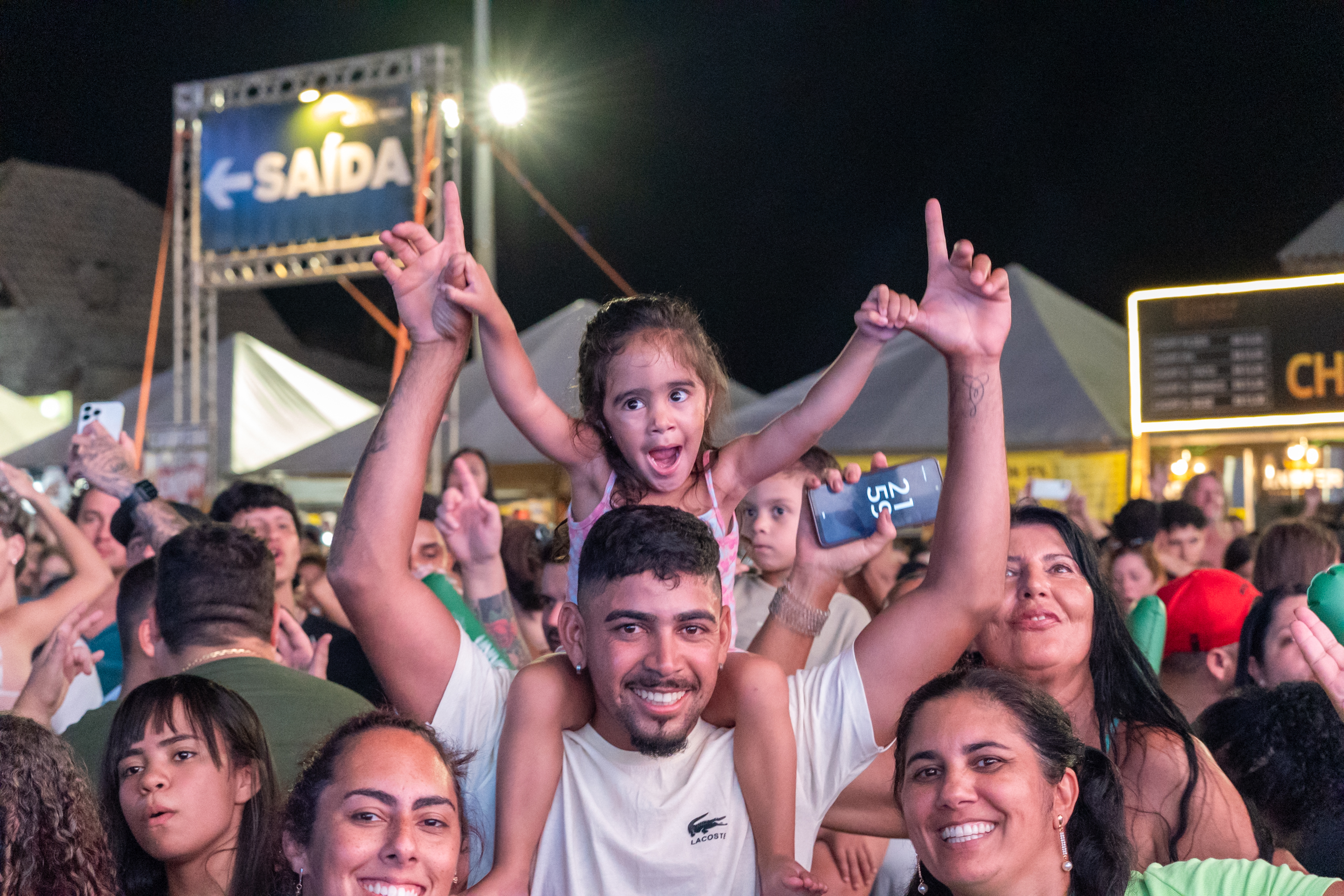 É a mesma impressão de Giliane Ferreira, que levou o filho e a sobrinha para ver o DJ Jiraya. “Está tudo perfeito. Tem banheiro, polícia, gente para auxiliar os veranistas”, declarou, antes de falar do artista favorito de Davi Lucca, de 10 anos. O garoto foi à arena com um traje imitando o ídolo. “O DJ Jiraya entrou na nossa vida faz pouco mais de um ano. Meu filho viu a música da festa junina na internet, mostrou pra gente e todo mundo gostou”, acrescentou.