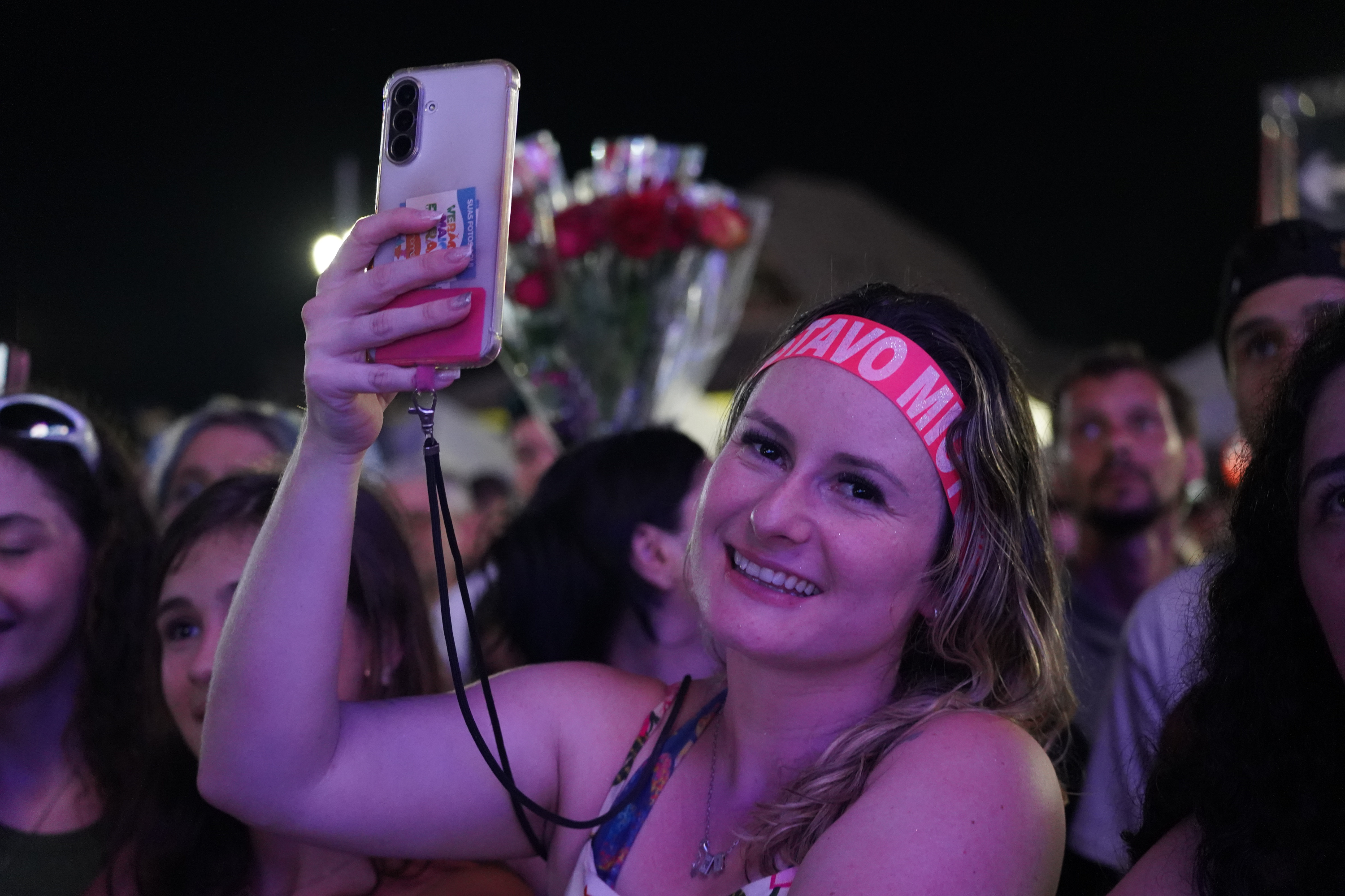 Assim, desde o primeiro minuto, Mioto regeu um coro de vozes de diversas idades, sempre cantando no limite do palco, pertinho dos fãs, e interagindo com a multidão. Pouco depois de abrir o repertório com “Solteiro não trai”, “Anti-Amor” e “Moletom”, garantiu o primeiro momento de descontração ao pegar o celular de Djullyette Portela, a Djully, uma fã de 28 anos que pediu ajuda do astro para reatar com o ex-namorado, Maurílio. “Gustavo, pega meu celular e grava áudio pro meu ex”, solicitava o cartaz observado pelo artista.