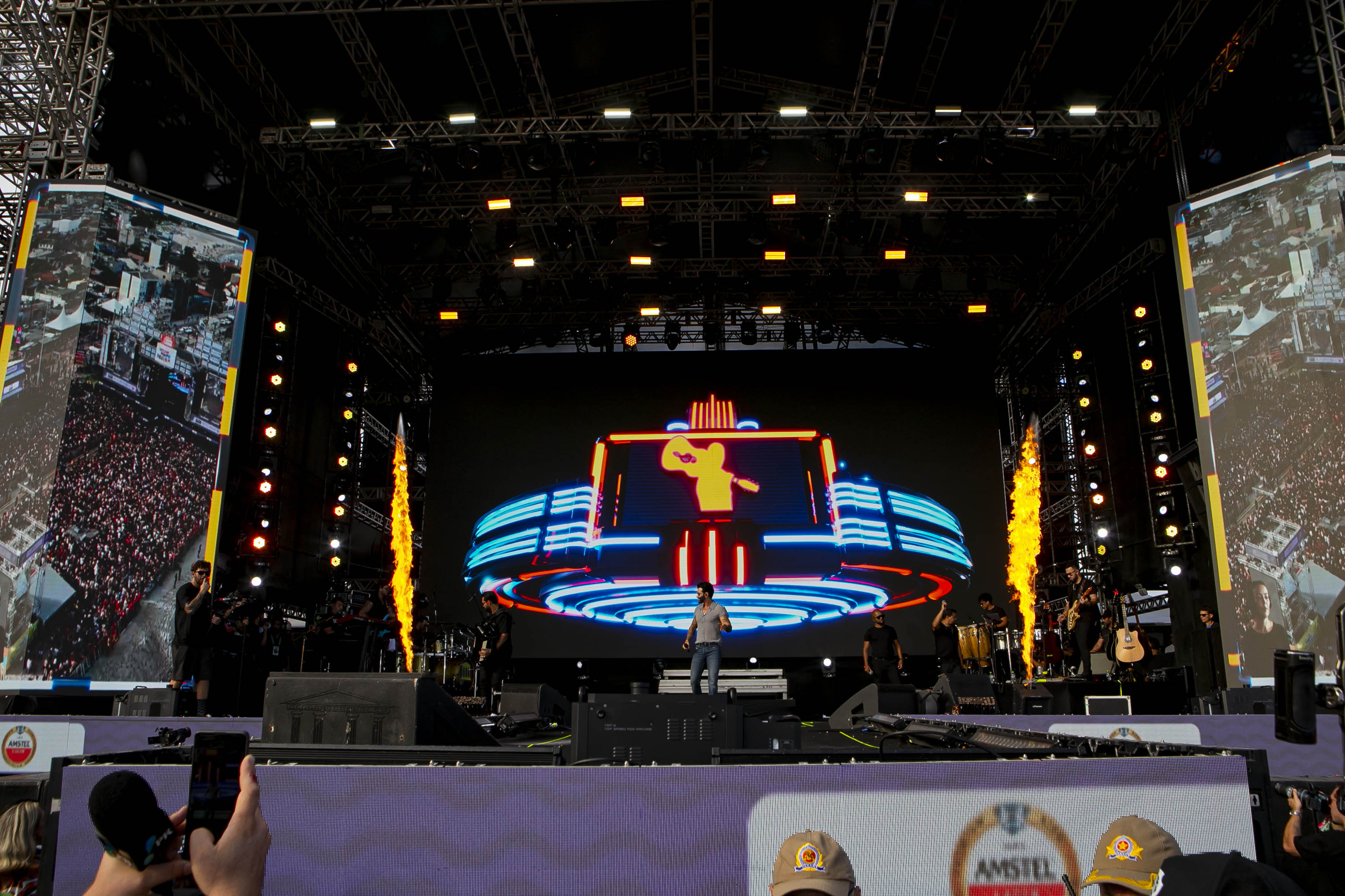 De uma ponta a outra da carreira, “Vagabundo”, mais recente lançamento de Gusttavo Lima e que expandiu seus horizontes para a América Latina ao fazer uma parceria com o porto-riquenho Luis Fonsi, colocou o público para bailar, seguida por “Que Pena Que Acabou”, falando sobre a dor do fim de um relacionamento. Teve até cover de Guns N’ Roses, com “Sweet Child O’ Mine”, e Dire Straits, com “So Far Away”.