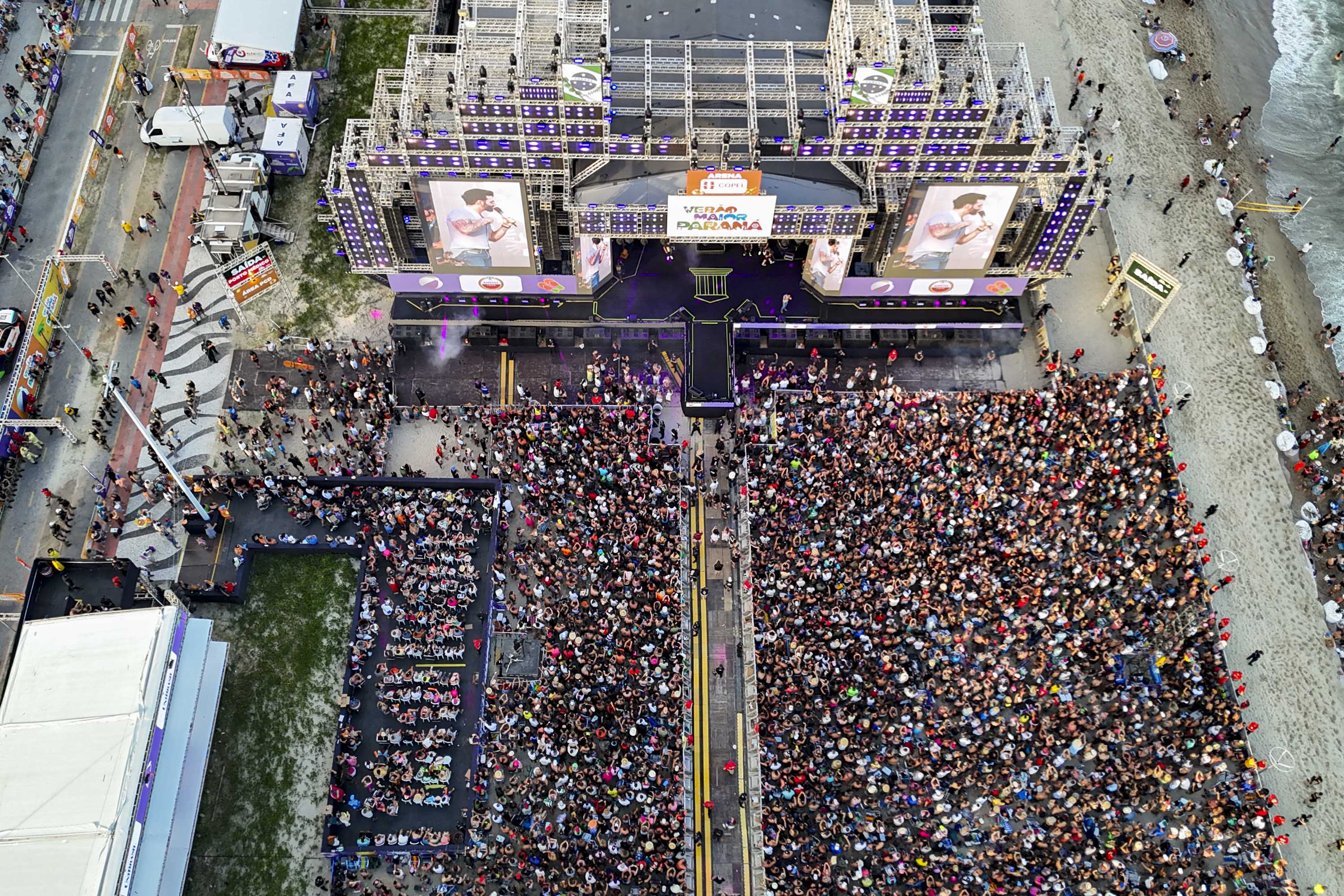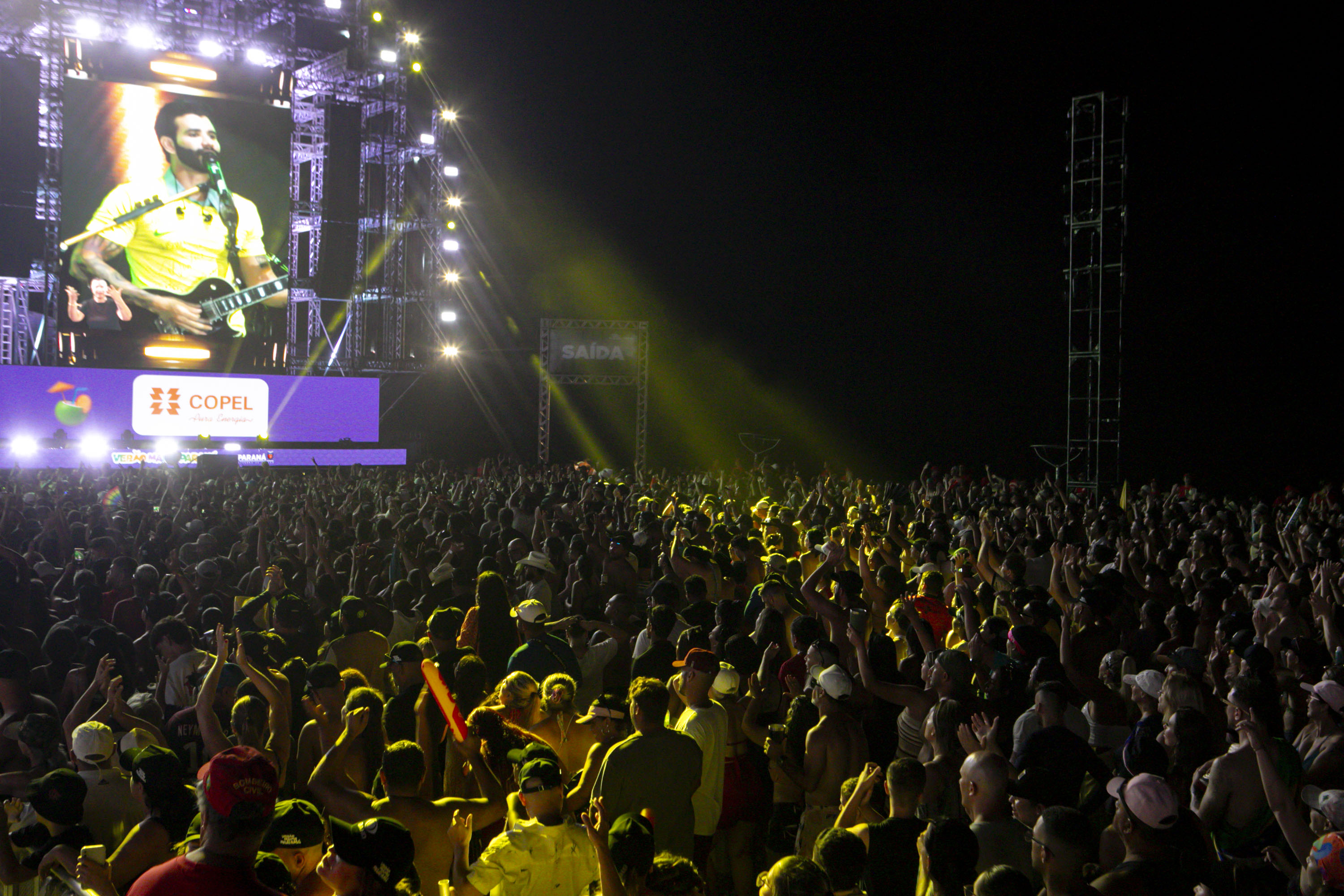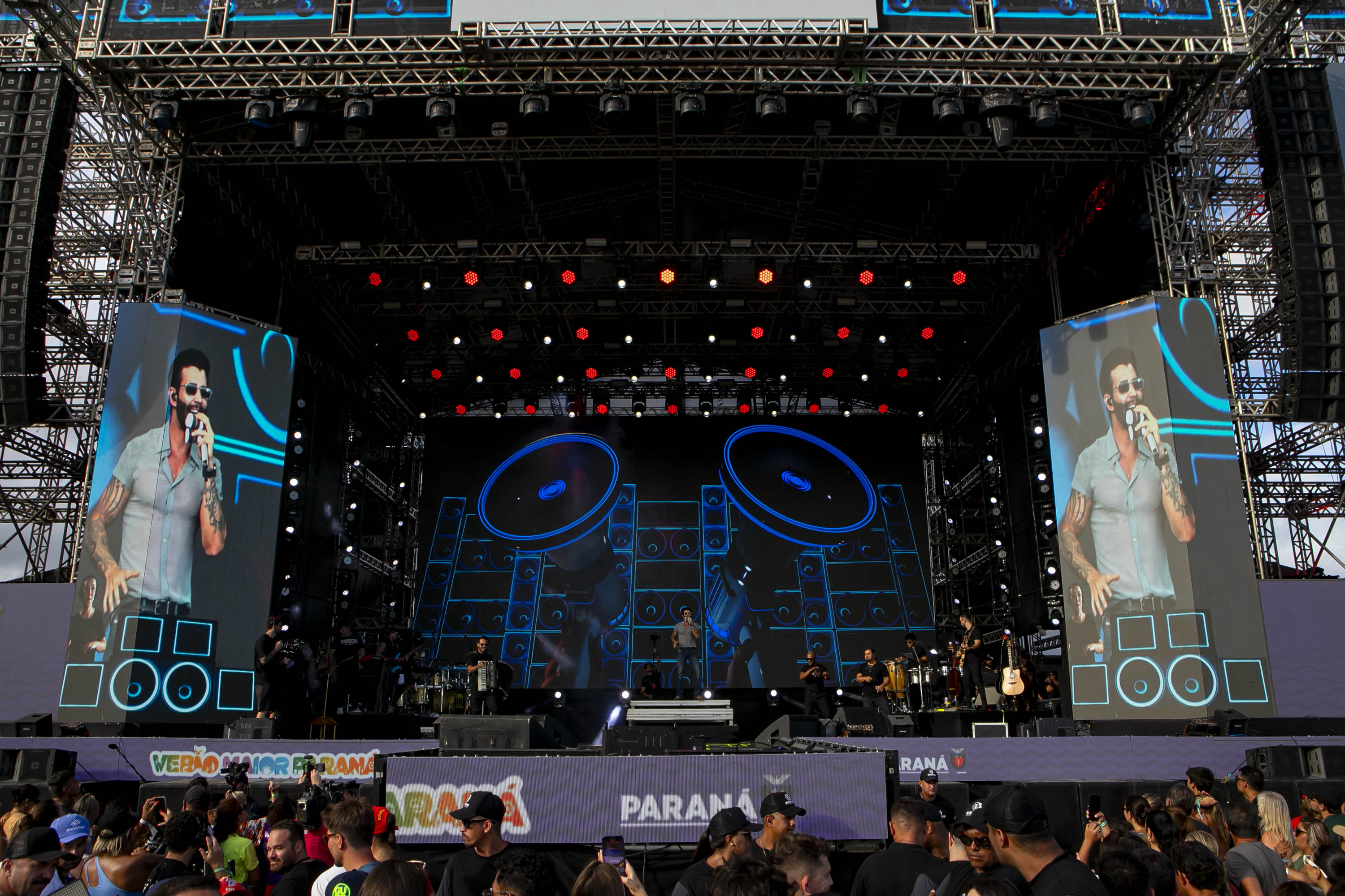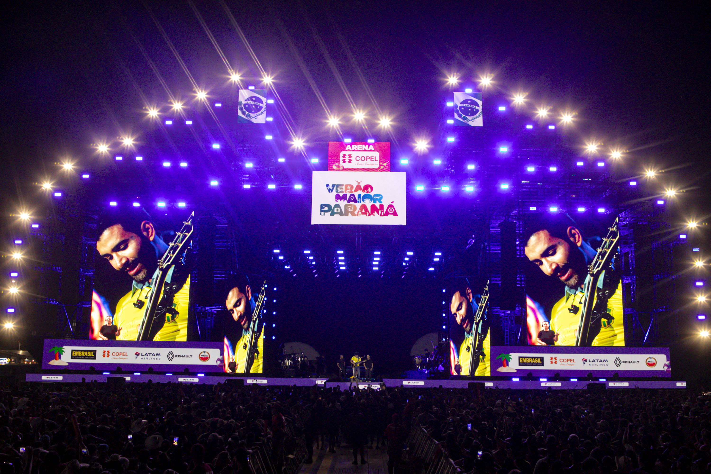 “O embaixador chegou!”. Assim foi a chegada de Gusttavo Lima ao palco do Verão Maior Paraná neste domingo (25) em Matinhos, no Litoral, em um show para 265 mil pessoas, segundo maior público da história do festival. Um dos principais expoentes do sertanejo universitário, Gusttavo trouxe um repertório de três horas com músicas desde o início de sua carreira até os sucessos mais recentes, que estão entre os mais tocados do Brasil.