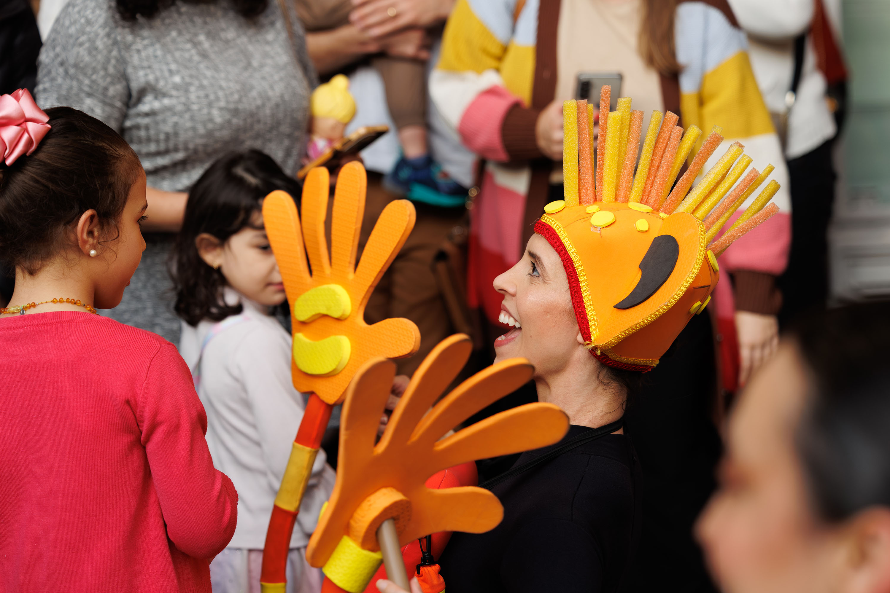 ENCONTRO DE PERSONAGENS – Após as apresentações, as crianças puderam interagir e tirar fotos com os personagens do espetáculo no foyer do Guairão. “É muito legal esse encontro depois porque é quando a gente vê exatamente o quanto o espetáculo toca as pessoas e o quanto elas ficam emocionadas, elas trazem esse retorno pra gente”, contou Garanhani.