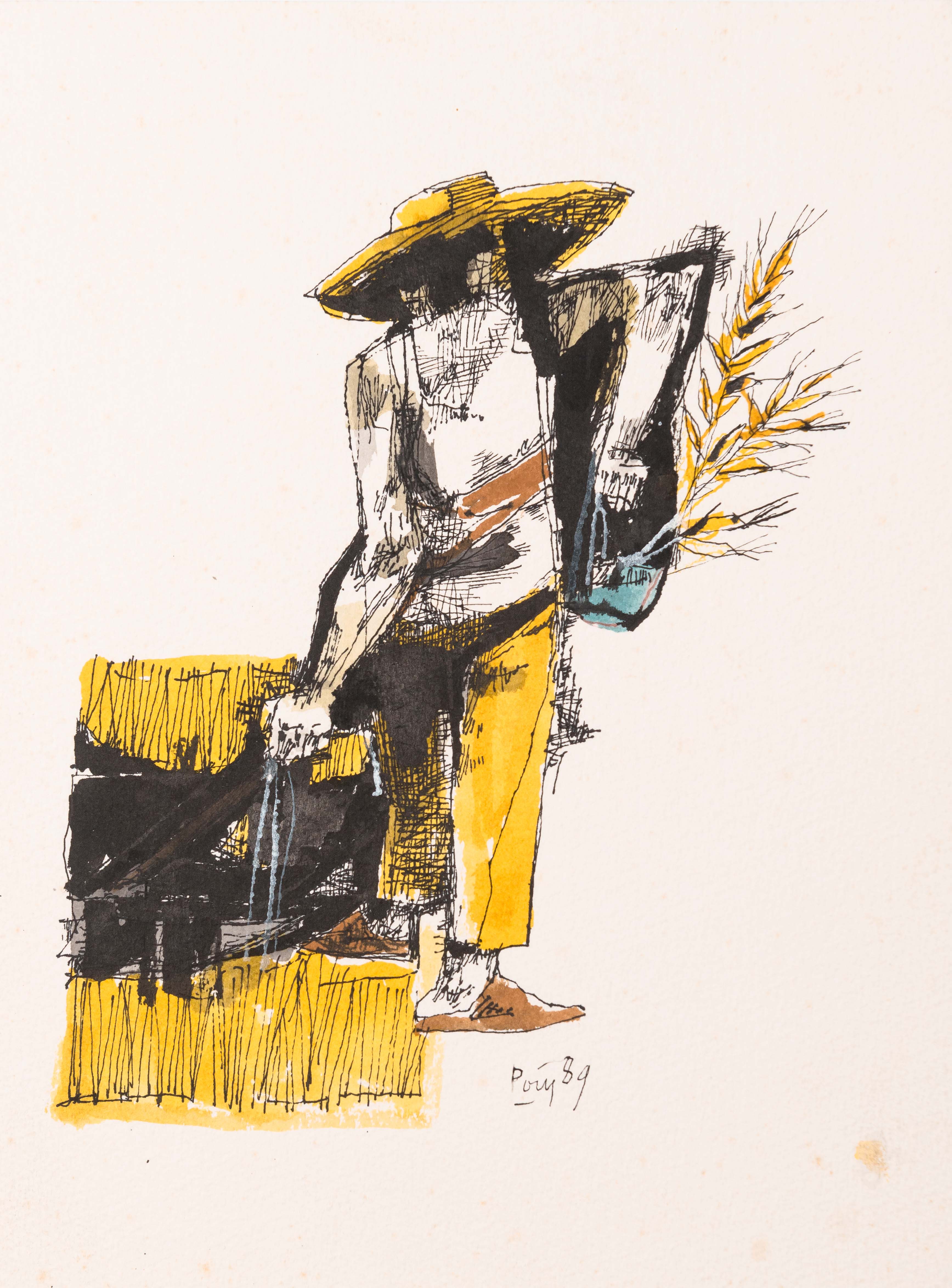 MAIS SOBRE POTY – Lazzarotto (Curitiba, 1924–1998) trilhou seu caminho a partir do desenho, aprofundando-se, em seguida, na gravura. Muito de sua produção é biográfica, indo de lembranças de menino em torno de trilhos e vagões de trem a registros de tipos curitibanos e dos cenários que eles habitam.