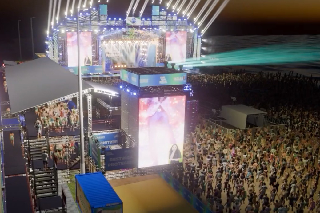 Outra novidade é o aumento no número de torres de delay, que passam de seis para 11 estruturas, garantindo qualidade sonora em todos os pontos ao longo da faixa de areia. O espaço também contará com área exclusiva para pessoas com deficiência (PCD), camarote de dois andares com house mix, estúdio de TV anexo, 20 tendas de alimentação e bebidase mais cinco bares instalados na faixa de areia, acoplados às torres de delay do lado do mar.