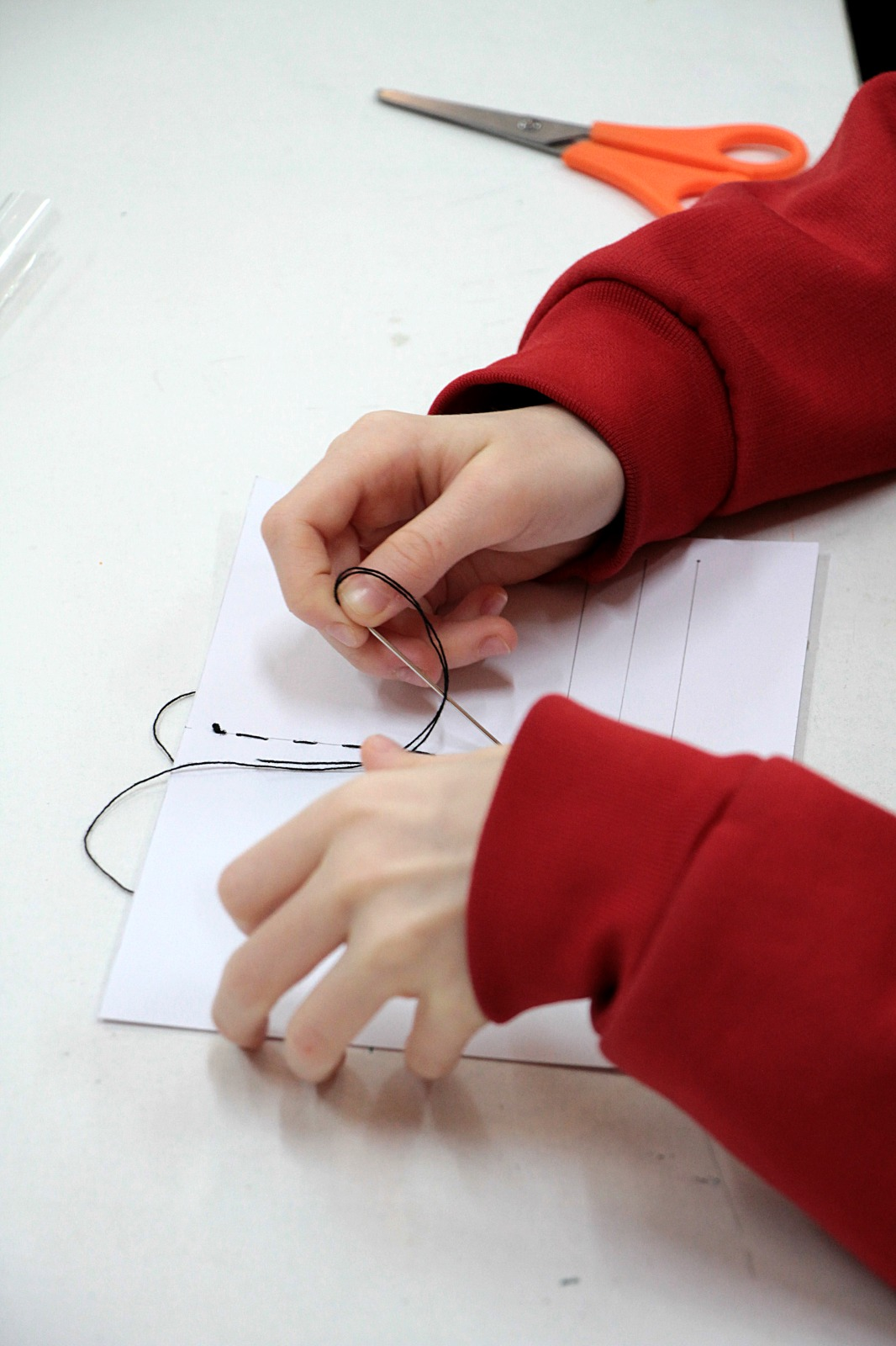 Já a oficina “Postal Incomum”, conduzida por Cláudia Lara, partiu das referências da arte e mitologia finlandesas para abordar a técnica do bordado e a criação de postais têxteis. A atividade foi inspirada na arte postal (mail art), movimento que rompe com a lógica expositiva tradicional e promove redes colaborativas de criação e troca entre artistas. Por meio das linhas e cores, os alunos expressaram seus territórios afetivos e imaginários, transformando memórias e vivências em arte compartilhada.