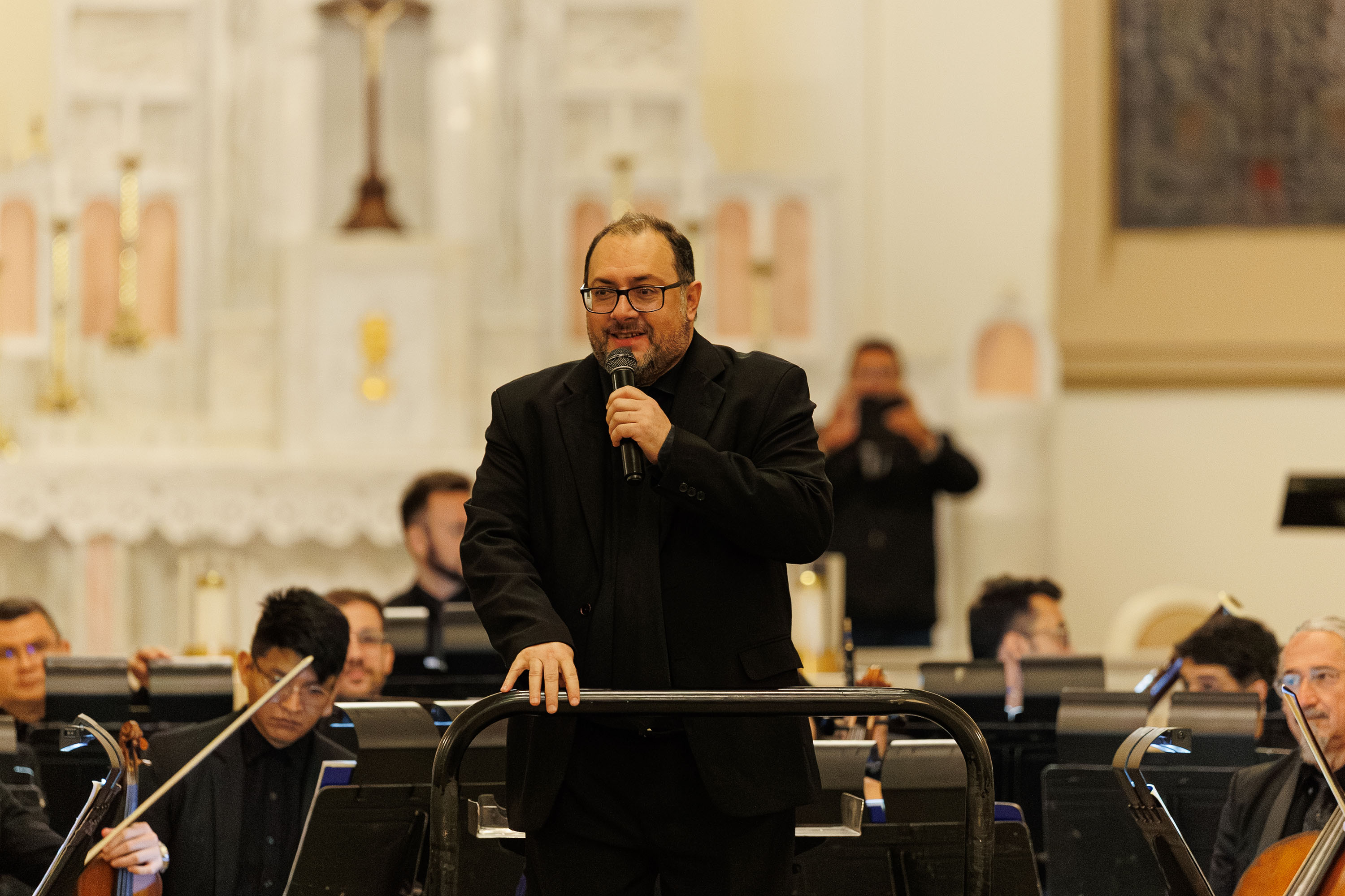 “Tocar em uma igreja é muito diferente, faz um eco muito grande. Quando a gente acaba de tocar, ainda sente o som andando pelo ar”, contou. O maestro destacou a rapidez com que os músicos absorveram essas particularidades sonoras. “Foi incrível, porque eles se adaptaram muito rápido. Na primeira música, é questão de dois, três compassos, a orquestra já está dentro do ar da acústica.”