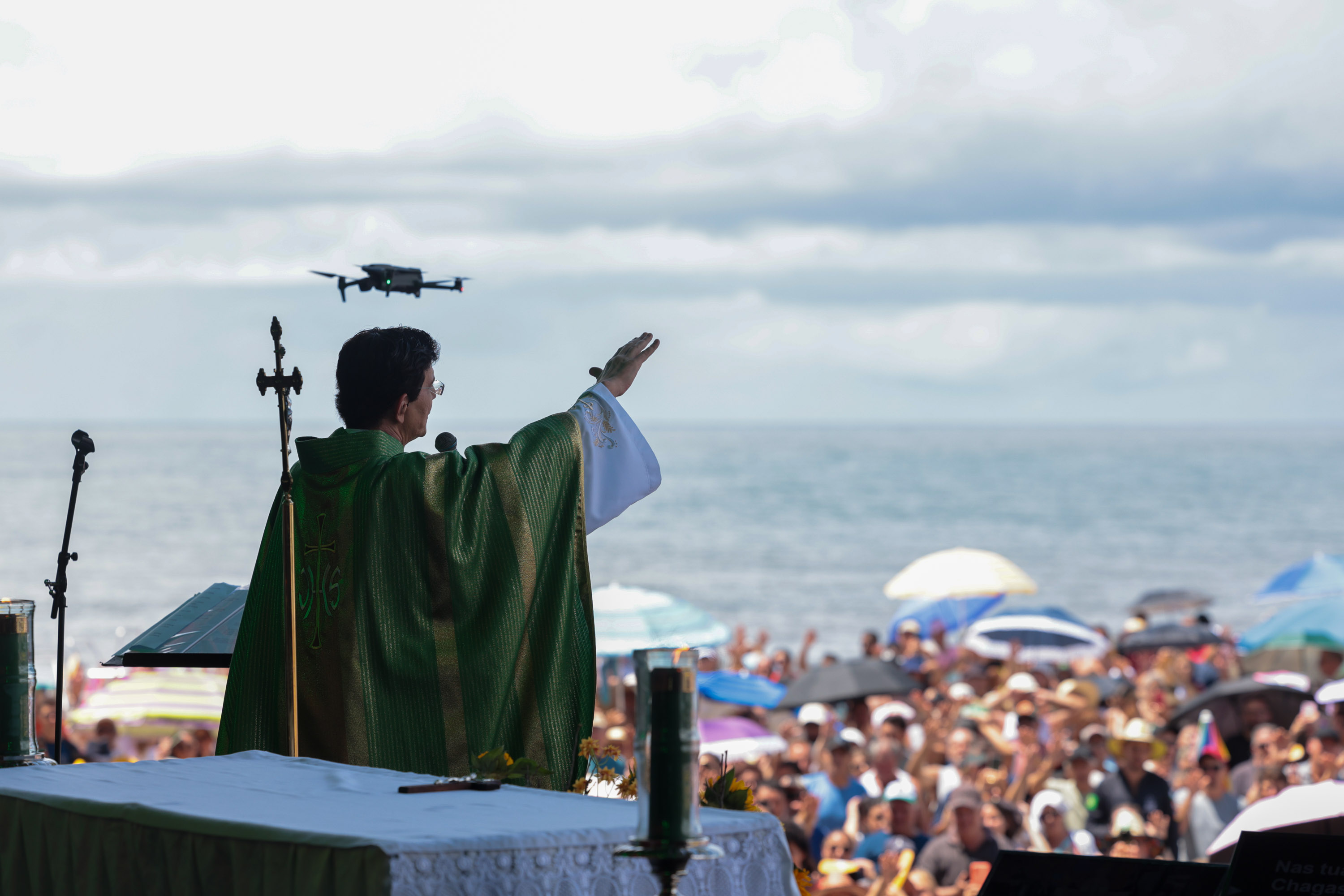 Neste domingo (8), ultimo dia do Verão Maior Paraná 2026, o Padre Reginaldo Manzotti reuniu mais de 38 mil pessoas em missa seguida de show no palco de Matinhos, no Litoral. Os fiéis puderam acompanhar a celebração e curtir canções de Manzotti, que é conhecido em todo o país e sucesso nas redes sociais, com mais de 300 mil ouvintes mensais no Spotify, 1,3 bilhões de visualizações no Youtube e 6,7 milhões de seguidores no Instagram.