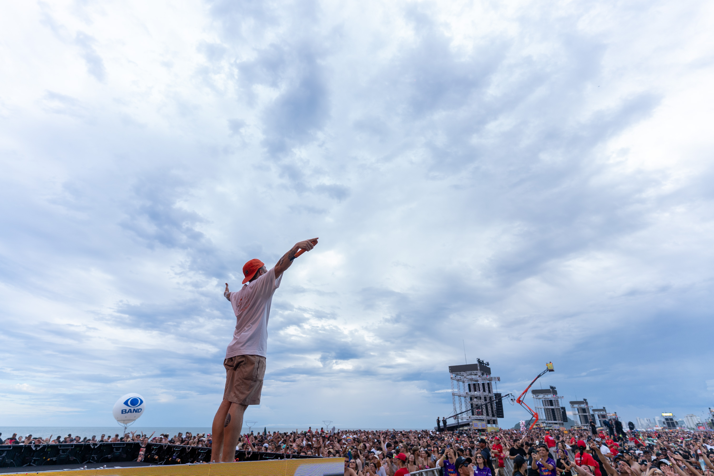 “Já tinham falado para a gente como era a energia do Verão Maior, hoje a gente conferiu pessoalmente. Eu vi de casa o show do Alok na sexta-feira e já fiquei na expectativa. Sábado meus parceiros estavam aqui e viram de perto o pessoal chegando cedo para acompanhar", contou o vocalista do Jeito Moleque, Gui Albuquerque.