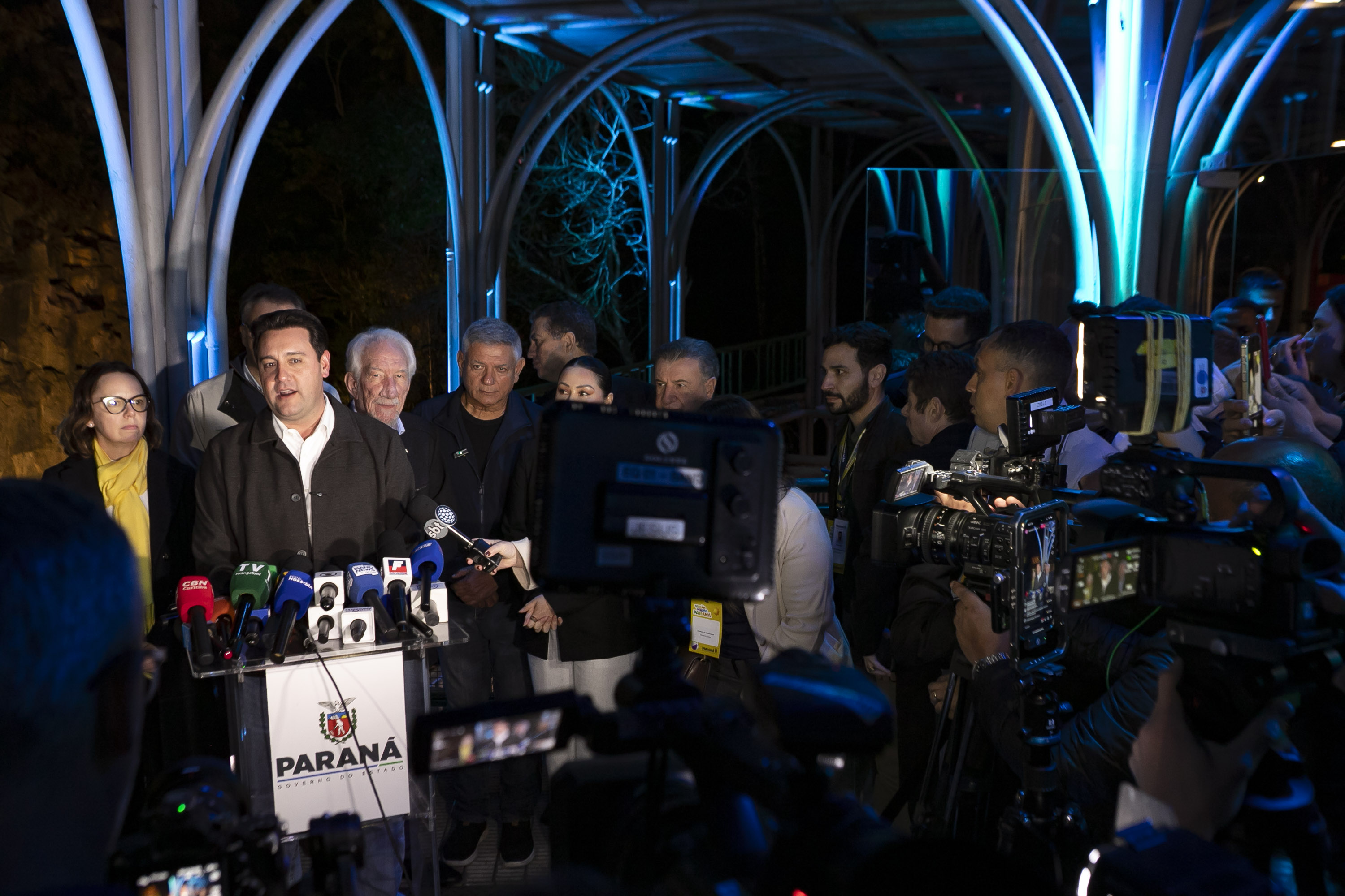 PRESENÇAS – Também participaram do anúncio das atrações do Verão Maior o vice-governador do Estado do Paraná, Darci Piana; o secretário-chefe da Casa Civil, João Carlos Ortega; o secretário do Esporte e coordenador do Verão Maior Paraná, Hélio Wirbiski; o secretário do Turismo, Leonaldo Paranhos; a secretária da Cultura, Luciana Casagrande Pereira; o secretário do Desenvolvimento Sustentável, Rafael Greca; o secretário da Segurança Pública, Hudson Teixeira; o prefeito de Pontal do Paraná e presidente da Associação dos Municípios do Litoral, Rudão Gimenes; o prefeito de Paranaguá, Adriano Ramos; o presidente da Alep, o deputado Alexandre Curi; a deputada Márcia Huçulak; o deputado Pedro Paulo Bazana; a deputada Cloara Pinheiro; o deputado Nelson Justus; o deputado Cobra Repórter; a deputada Marli Paulino; o deputado Anibelli Neto; o deputado Adriano José; a apresentadora da Band São Paulo, Lívia Nepomuceno; o diretor de Programação e Artístico do SBT, Mauro Lissoni; e o presidente executivo do Grupo RIC Paraná, Leonardo Petrelli.