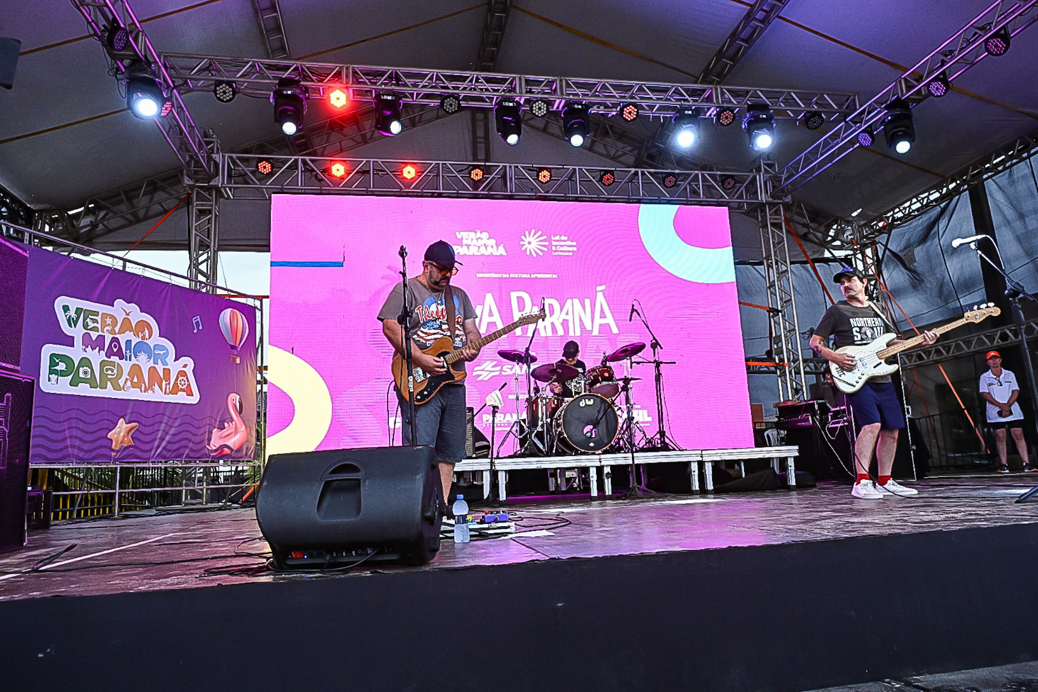 A proposta de descentralização cultural também se consolidou nos palcos montados no interior do Estado. Em Porto Rico, o show de Jota Jr. e Rodrigo teve repertório de música popular e regional, enquanto em Porto São José, a Banda Garrafão animou com um espetáculo marcado pela interação e pela celebração coletiva.