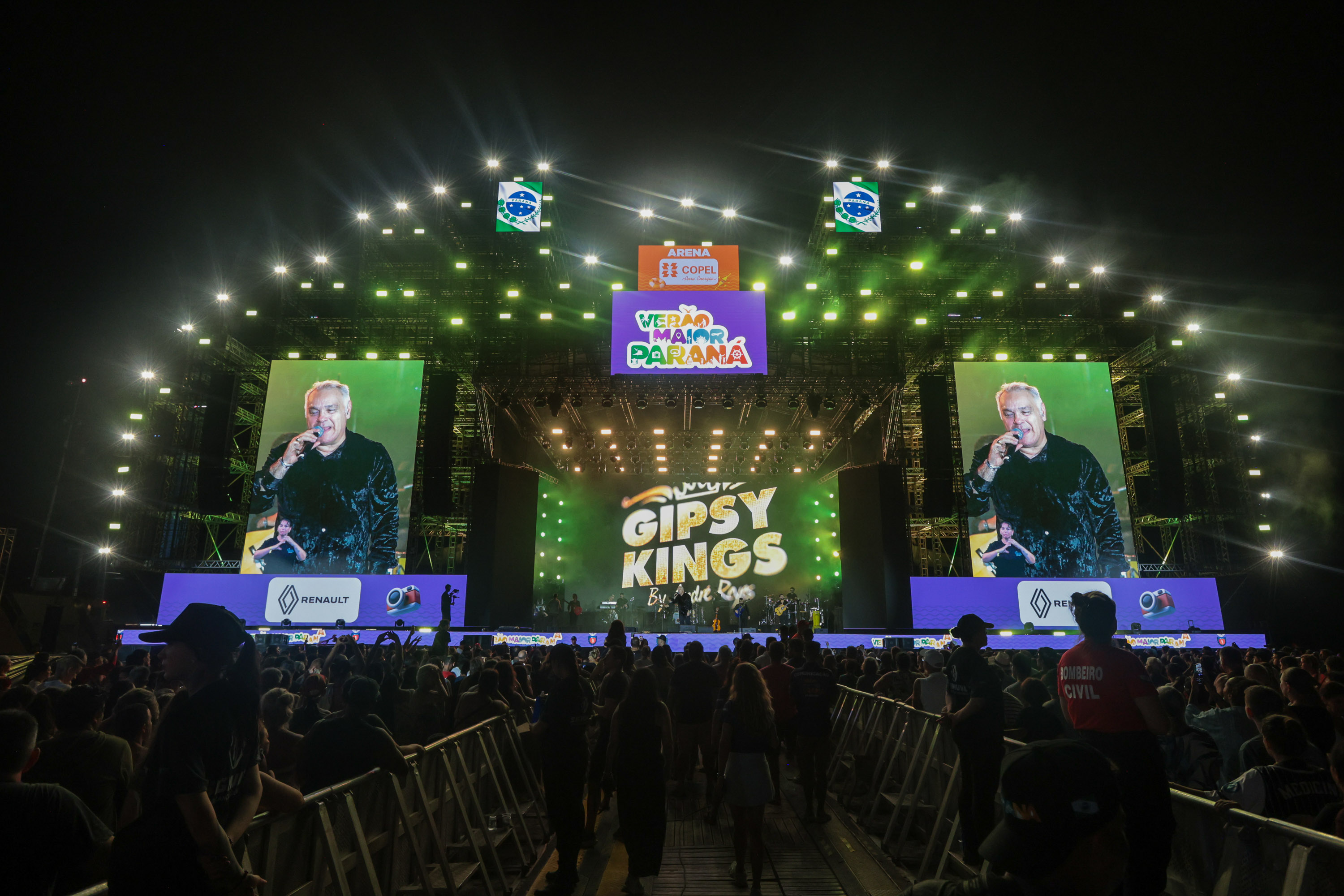 A sonoridade inconfundível da rumba flamenca, que conquistou o mundo a partir do sul da França, tomou conta da orla de Caiobá, em Matinhos, com a apresentação do Gipsy Kings by Andre Reyes na noite desta sexta-feira (16), dentro da programação de grandes artistas nacionais e internacionais do Verão Maior Paraná, promovido pelo Governo do Estado. O show reuniu 105 mil pessoas na areia da praia, segundo estimativa oficial da Polícia Militar do Paraná, em mais uma noite marcada pela diversidade musical e pelo clima multicultural que já é característico do festival.