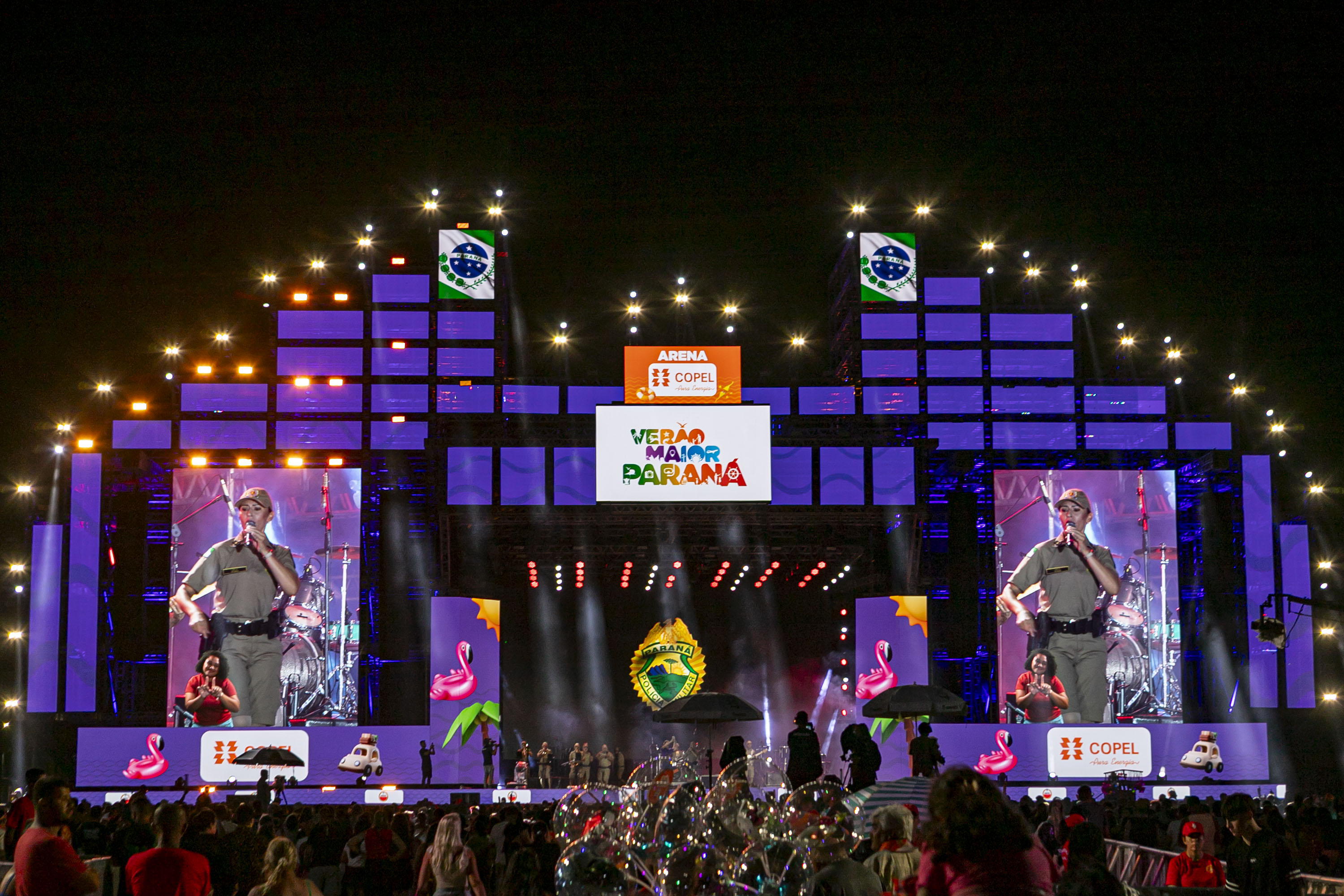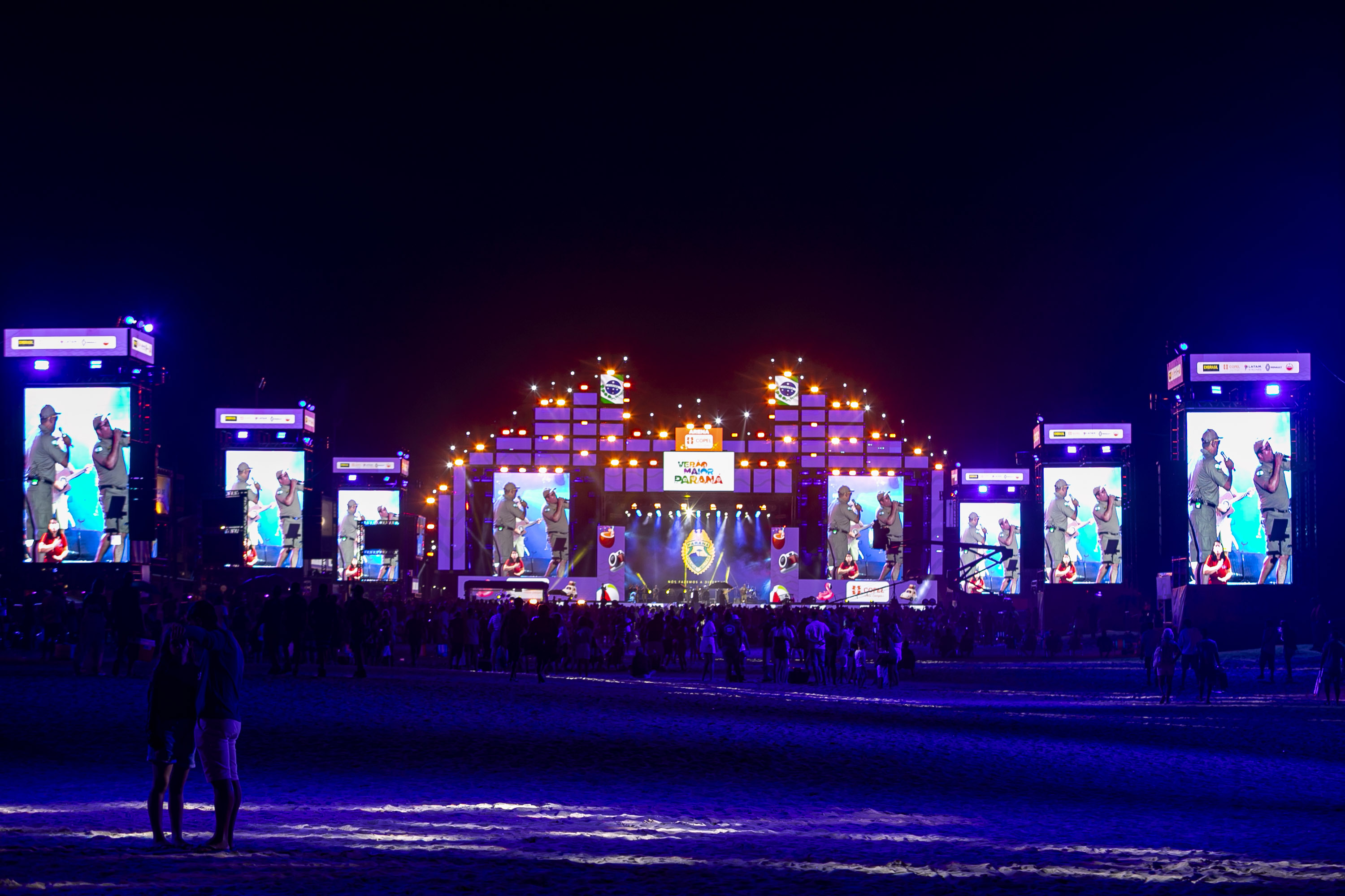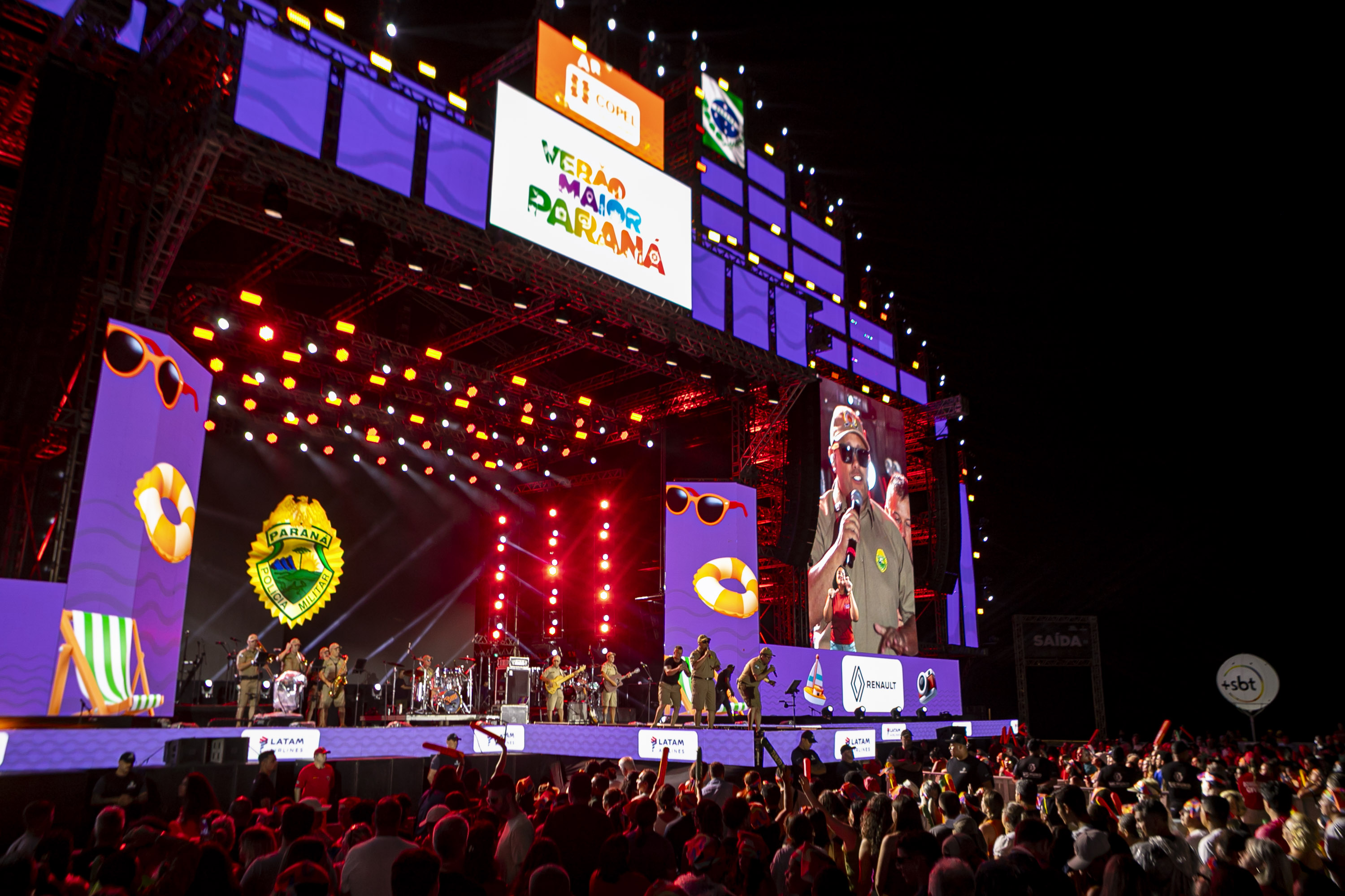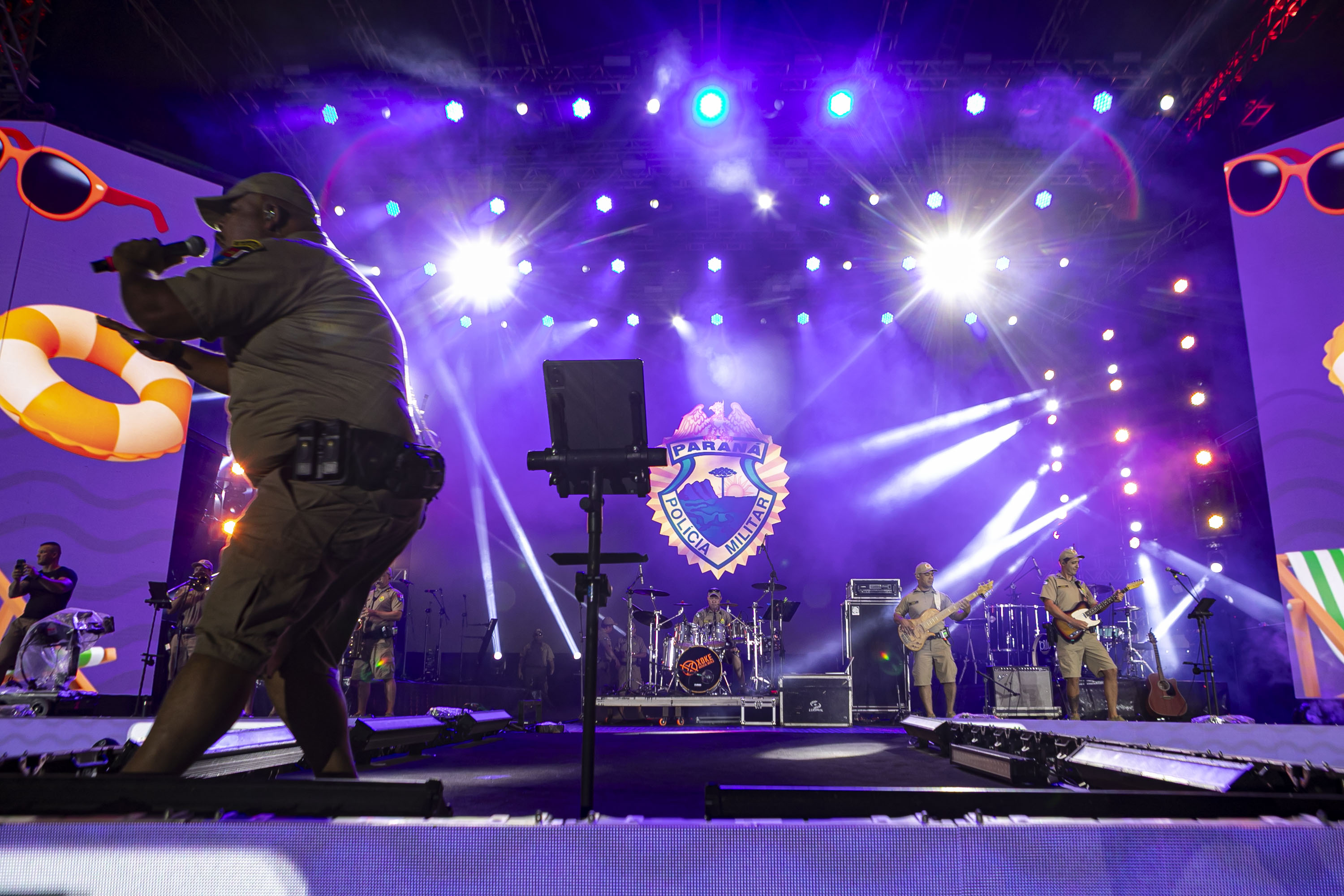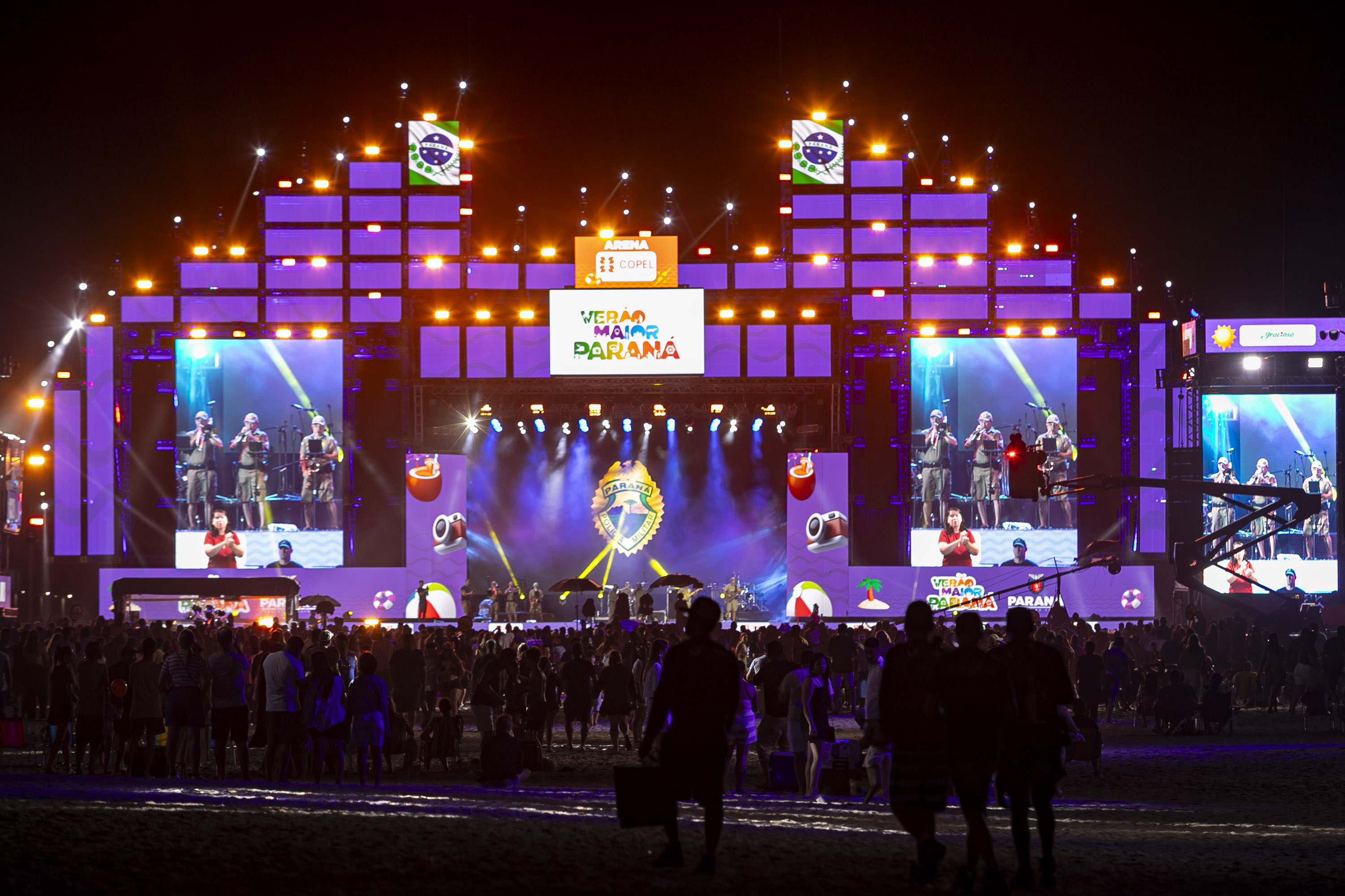 O público chegou bem aquecido para o show. Antes da atração principal, a banda da Polícia Militar do Paraná (PMPR) abriu os trabalhos no palco de Matinhos. “O reconhecimento do público pelo nosso trabalho é algo que nos emociona. Nos preparamos para esse momento, com músicos muito talentosos, e o retorno do lado de lá tem sido espetacular”, disse o comandante da banda, capitão Jefferson Cardoso.
