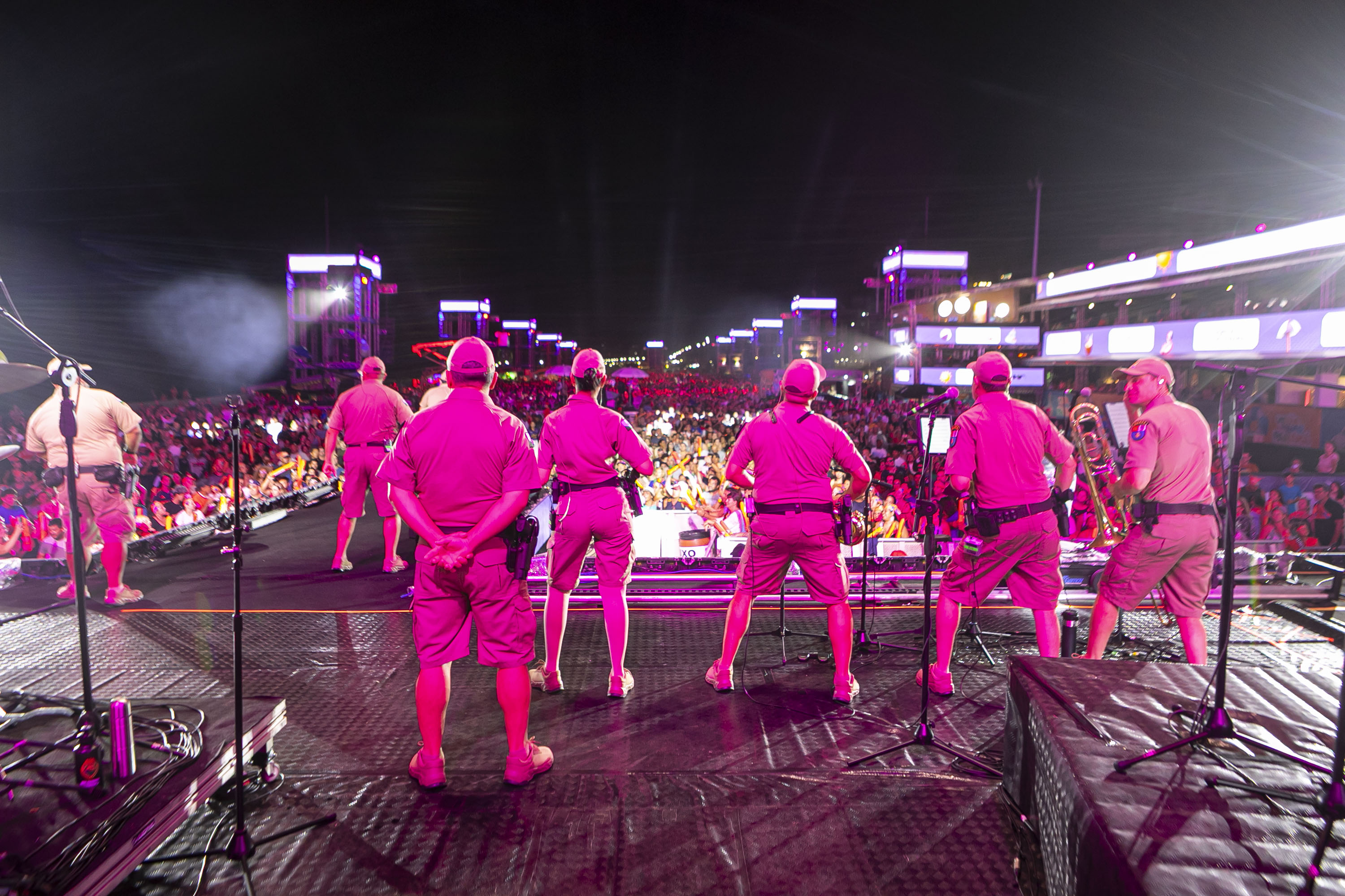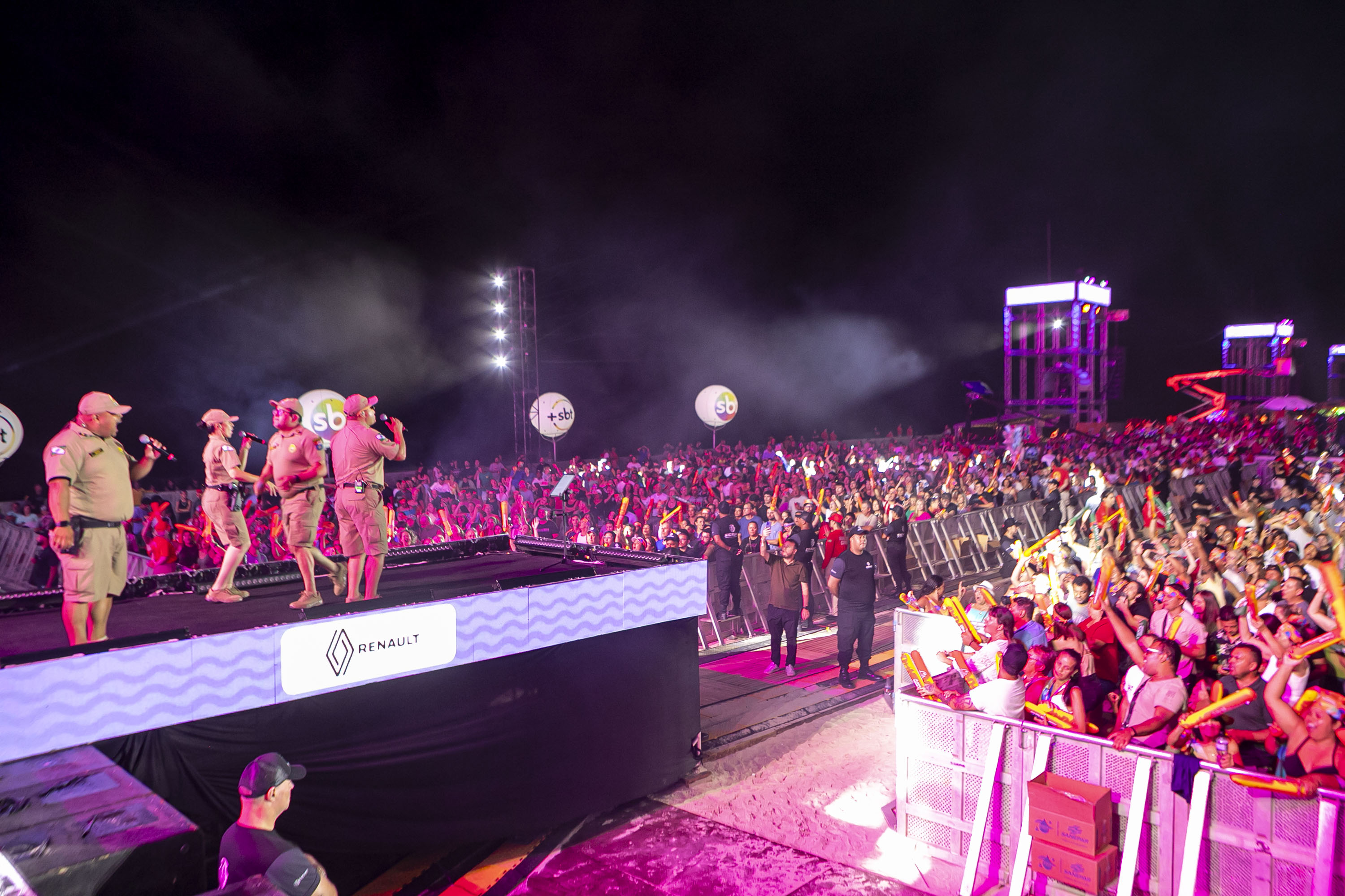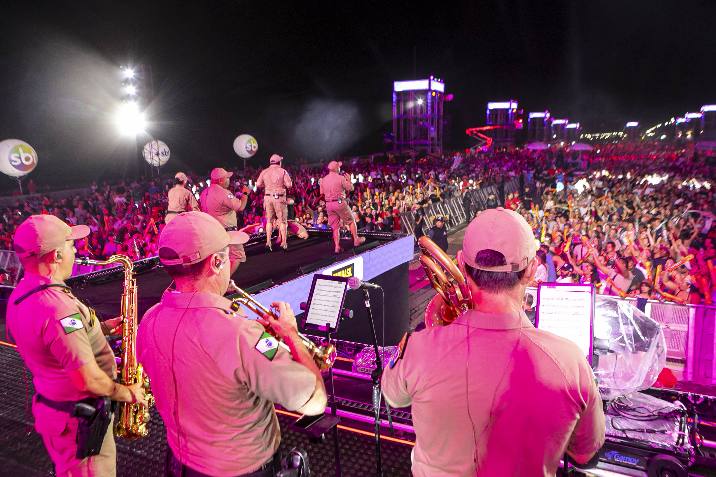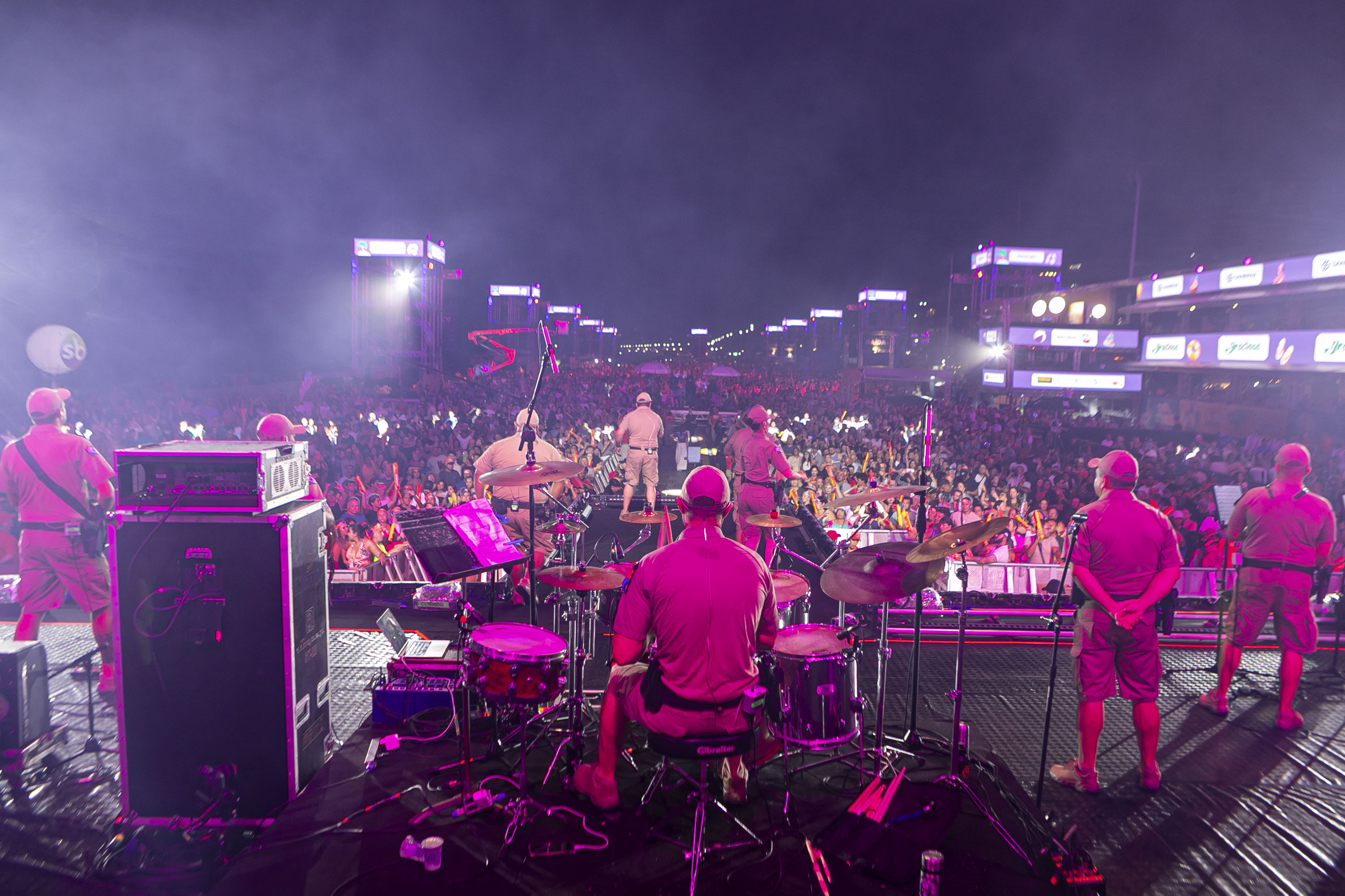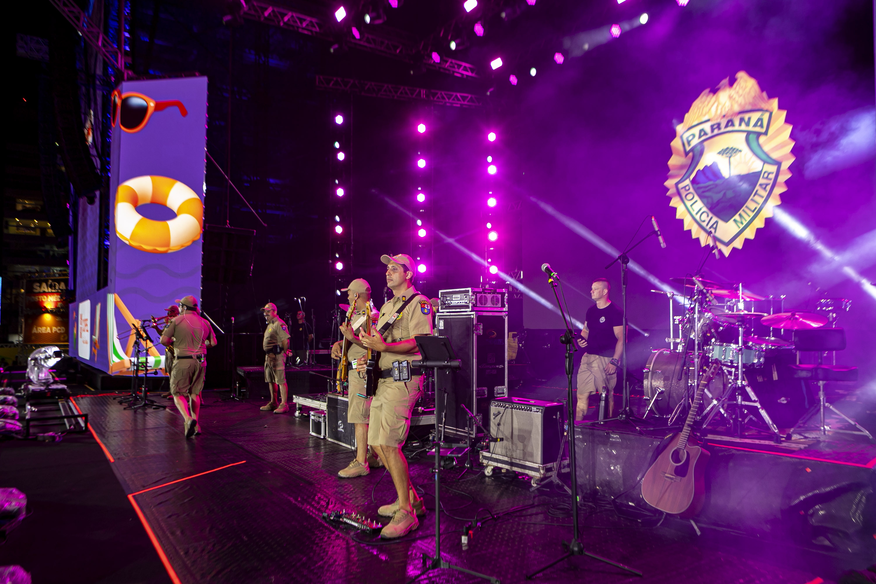 O público chegou bem aquecido para o show. Antes da atração principal, a banda da Polícia Militar do Paraná (PMPR) abriu os trabalhos no palco de Matinhos. “O reconhecimento do público pelo nosso trabalho é algo que nos emociona. Nos preparamos para esse momento, com músicos muito talentosos, e o retorno do lado de lá tem sido espetacular”, disse o comandante da banda, capitão Jefferson Cardoso.
