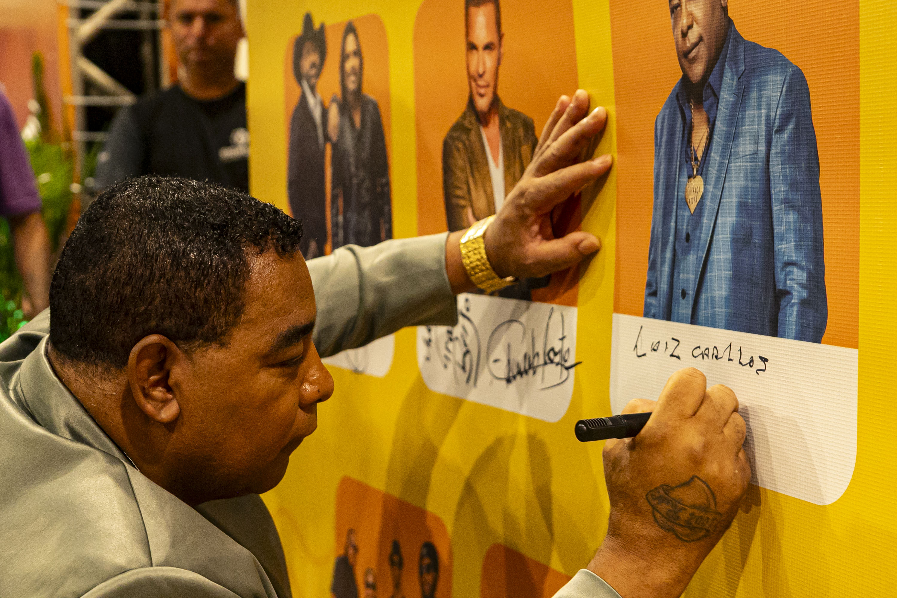 DESDE ÀS 4 DA TARDE – Teve fã de carteirinha e com faixa na cabeça que chegou cedo para garantir o melhor lugar. Carla Oliveira, de 42 anos, foi uma delas. Ela veio de Curitiba para acompanhar o show de seus pagodeiros preferidos. “A minha adolescência inteira eu passei ouvindo Raça Negra. Estou doida para ver ele no palco. Eu sou gaúcha, mas moro em Curitiba há mais de 30 anos, e sim, eu vim especialmente para os shows. É muito especial para mim estar aqui hoje”, contou, minutos antes de realizar o sonho de tirar uma foto com Luiz Carlos.