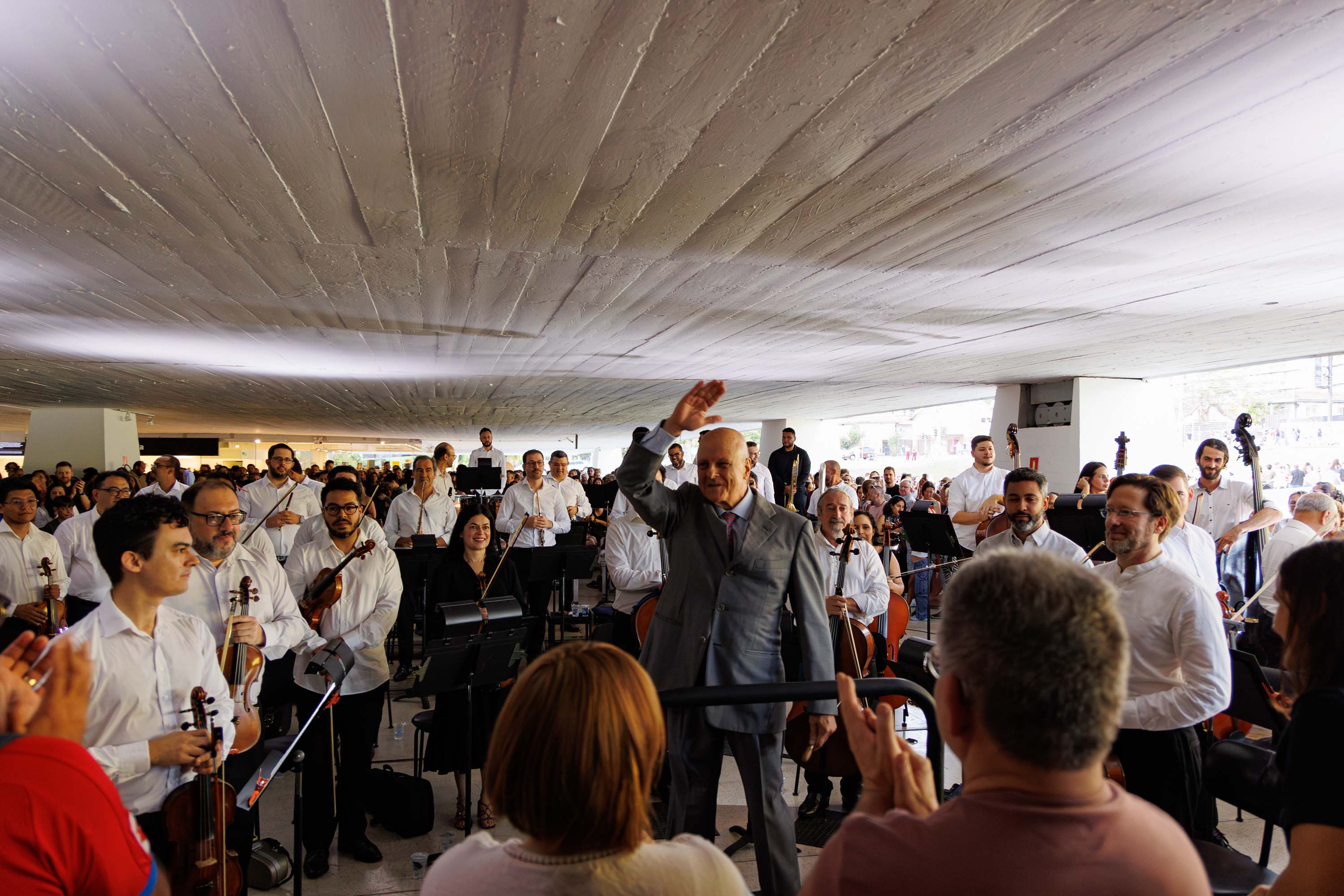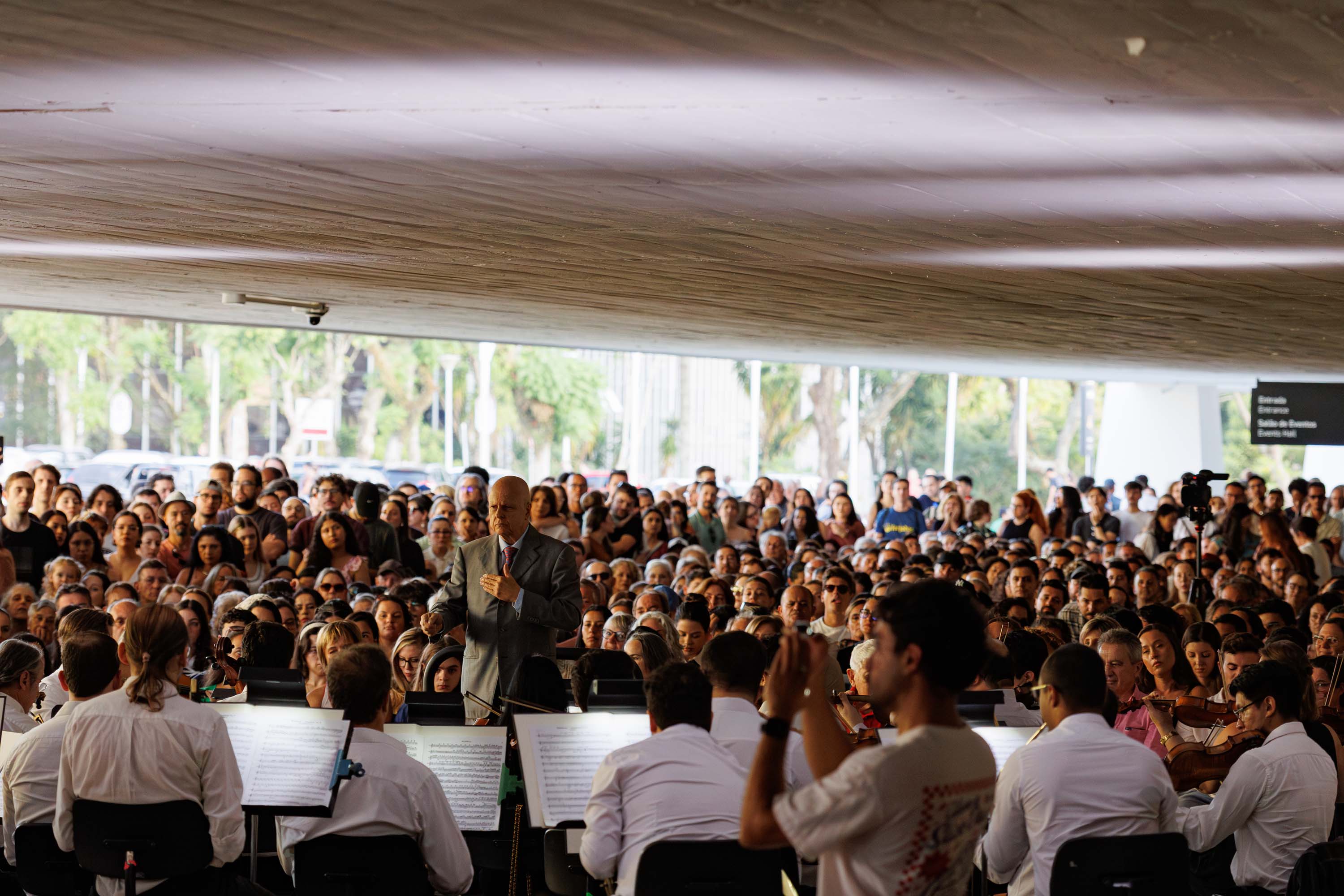 Mais de três mil pessoas estiveram neste sábado (25) no Museu Oscar Niemeyer (MON) durante o concerto ao ar livre da série “Mostly Mozart”. A série começou no ano passado como parte das comemorações dos 40 anos da Orquestra Sinfônica do Paraná (OSP). Em 2025, foram seis apresentações gratuitas que reuniram mais de 6 mil pessoas no museu. A primeira edição de 2026, que ocorreu em fevereiro, teve cerca de 1 mil espectadores, e agora um novo recorde.
