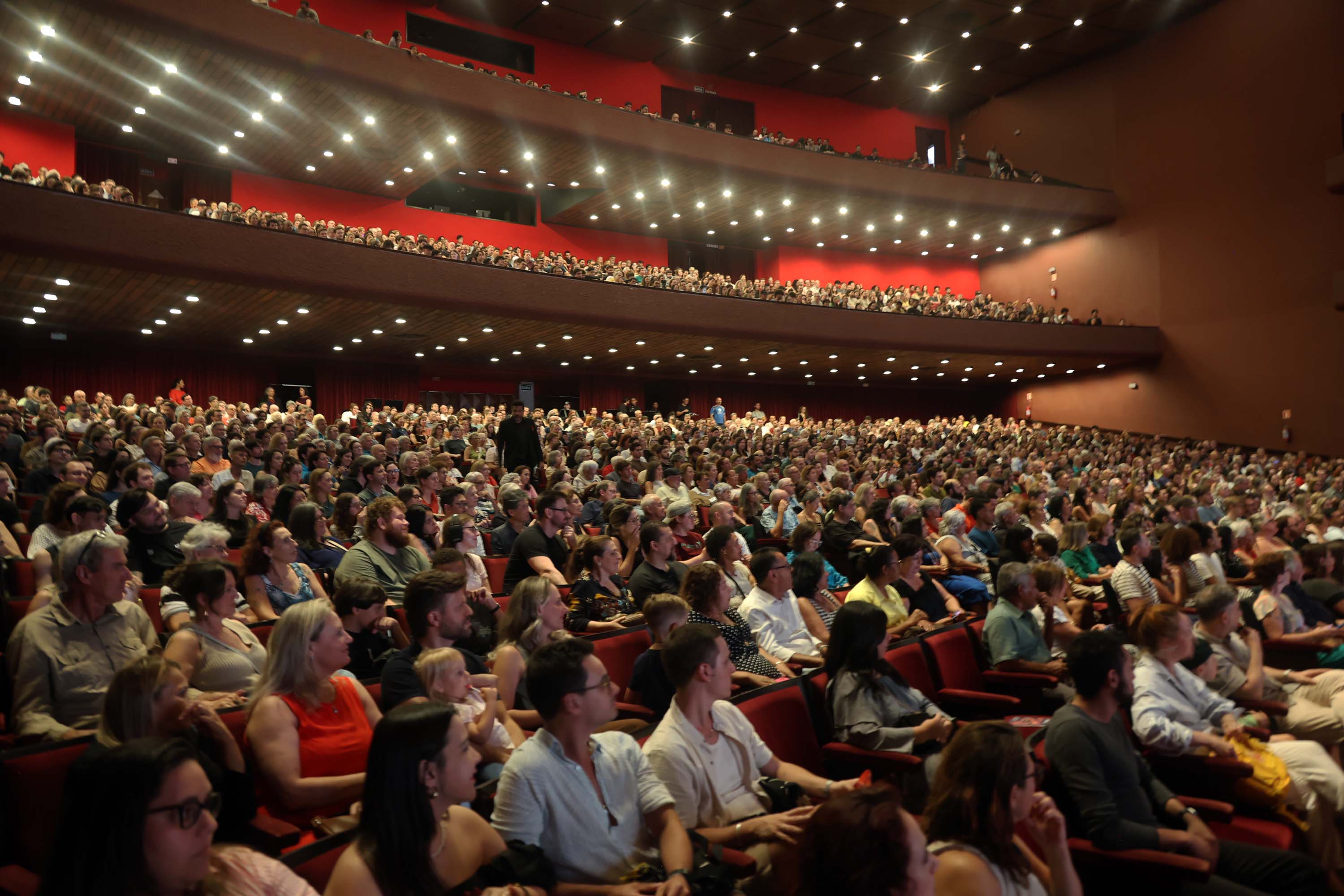 “Isso aqui é um ambiente maravilhoso de música, é uma troca linda e muito poderosa”, disse Paulo Malaguti, do grupo vocal MPB4, que retornou ao palco do Guairão após décadas.