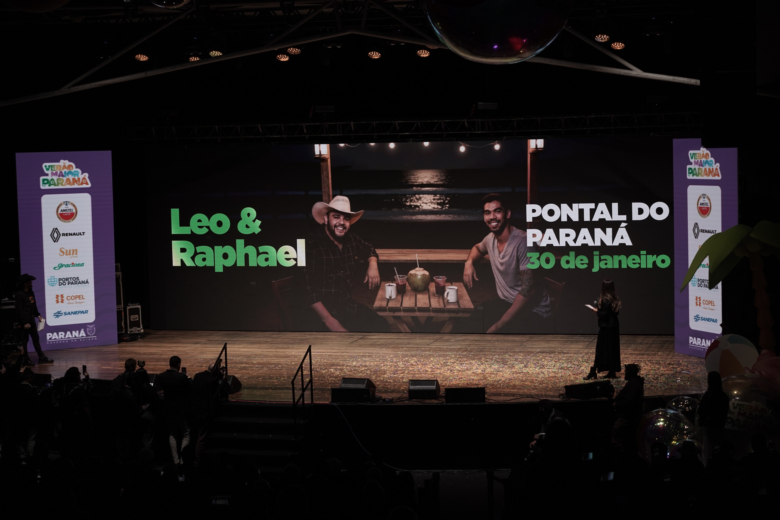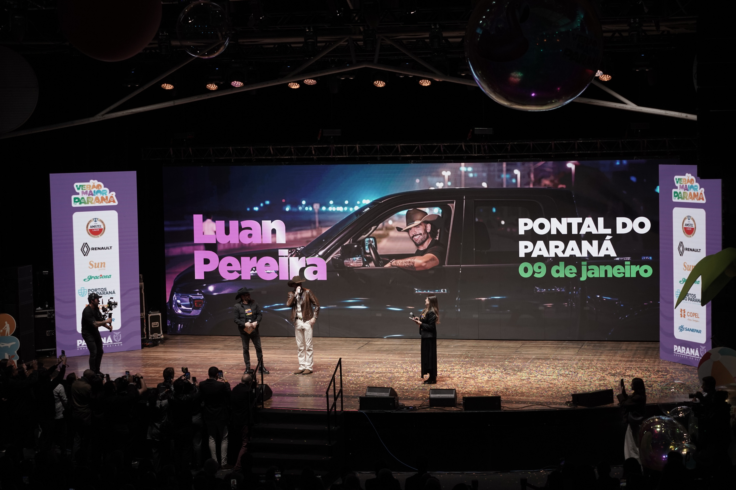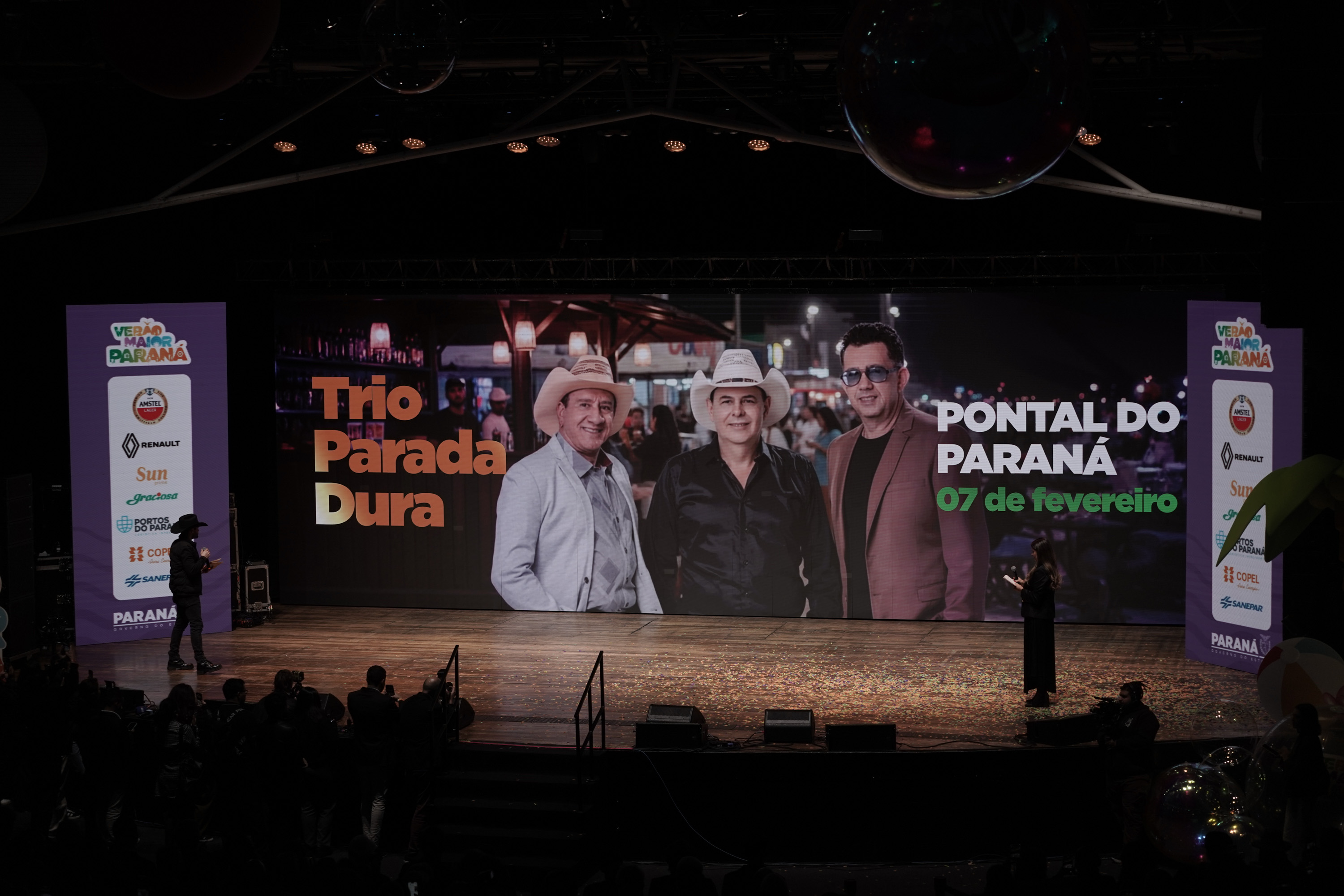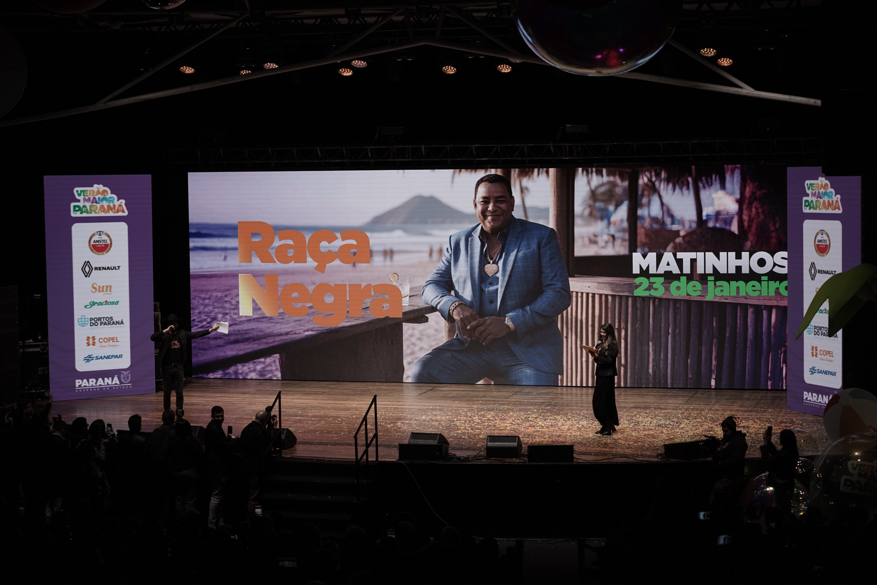 O Governo do Paraná anunciou nesta terça-feira (21) os nomes das atrações do Verão Maior Paraná 2026. São cinco finais de semana seguidos de espetáculos gratuitos, de 9 de janeiro a 8 de fevereiro. Entre as novidades estão shows nas quintas-feiras, atrações internacionais e palcos que devem ser maiores do que no ano passado. Os shows acontecerão nas praias de Matinhos e Pontal do Paraná e terão transmissão do SBT, Band, TVCI, Banda B e TV Paraná Turismo para todo o Brasil.