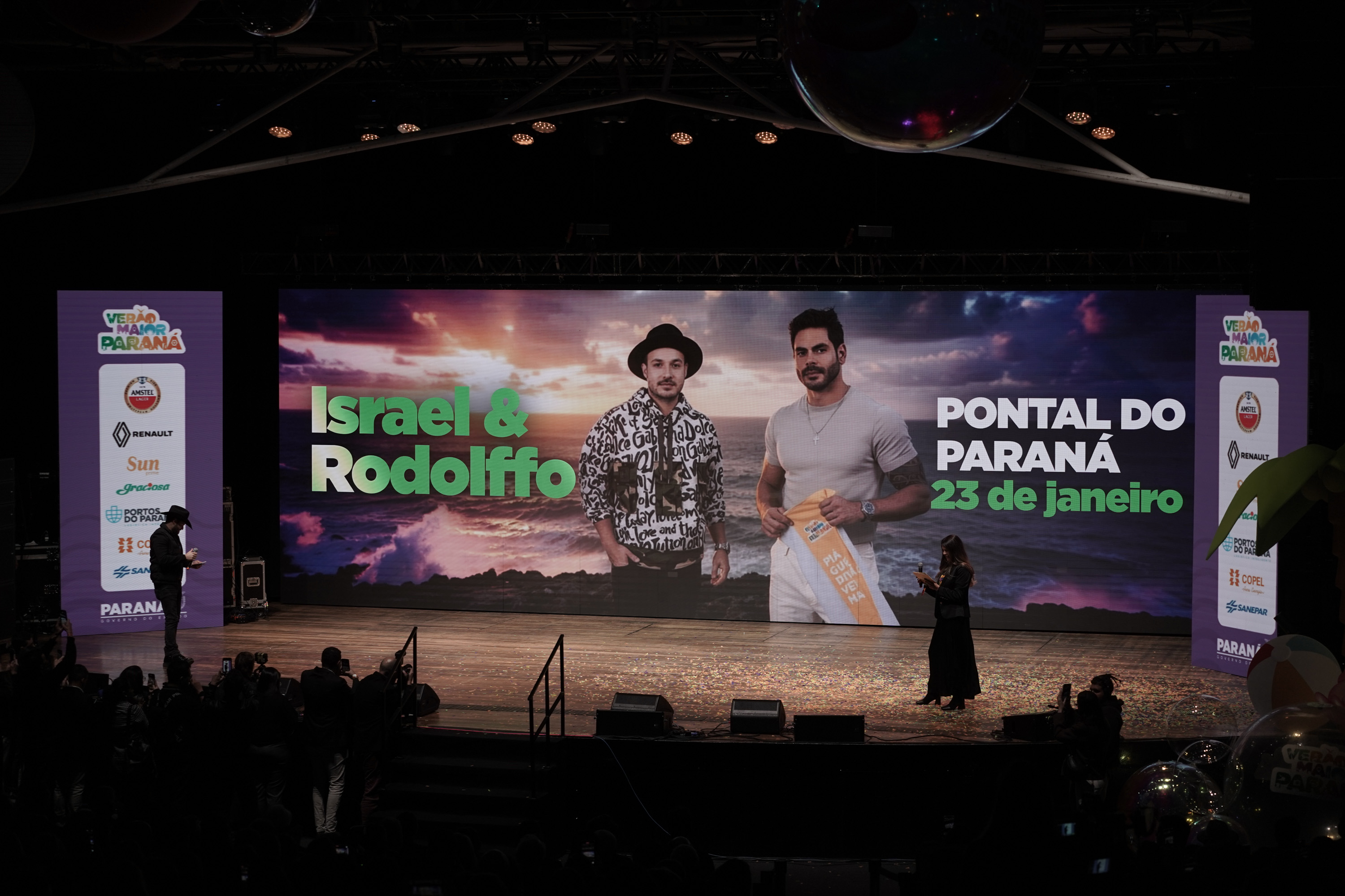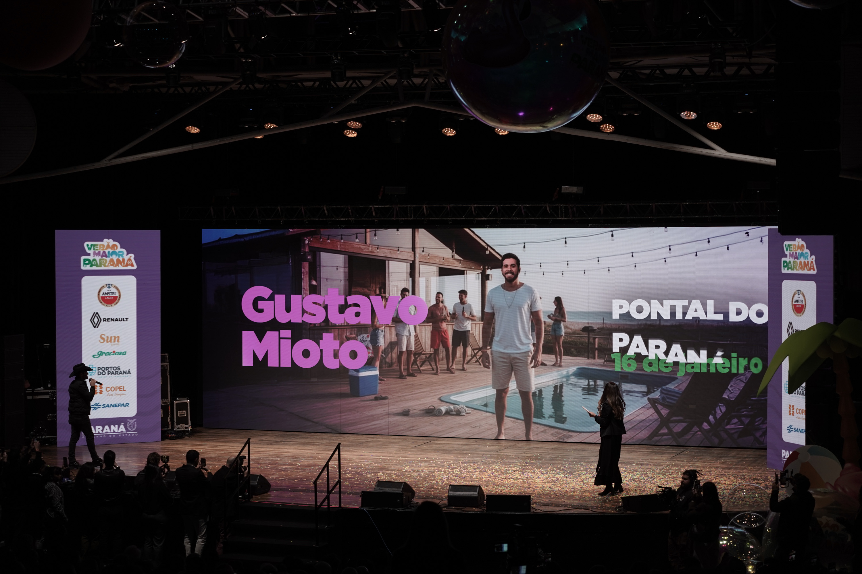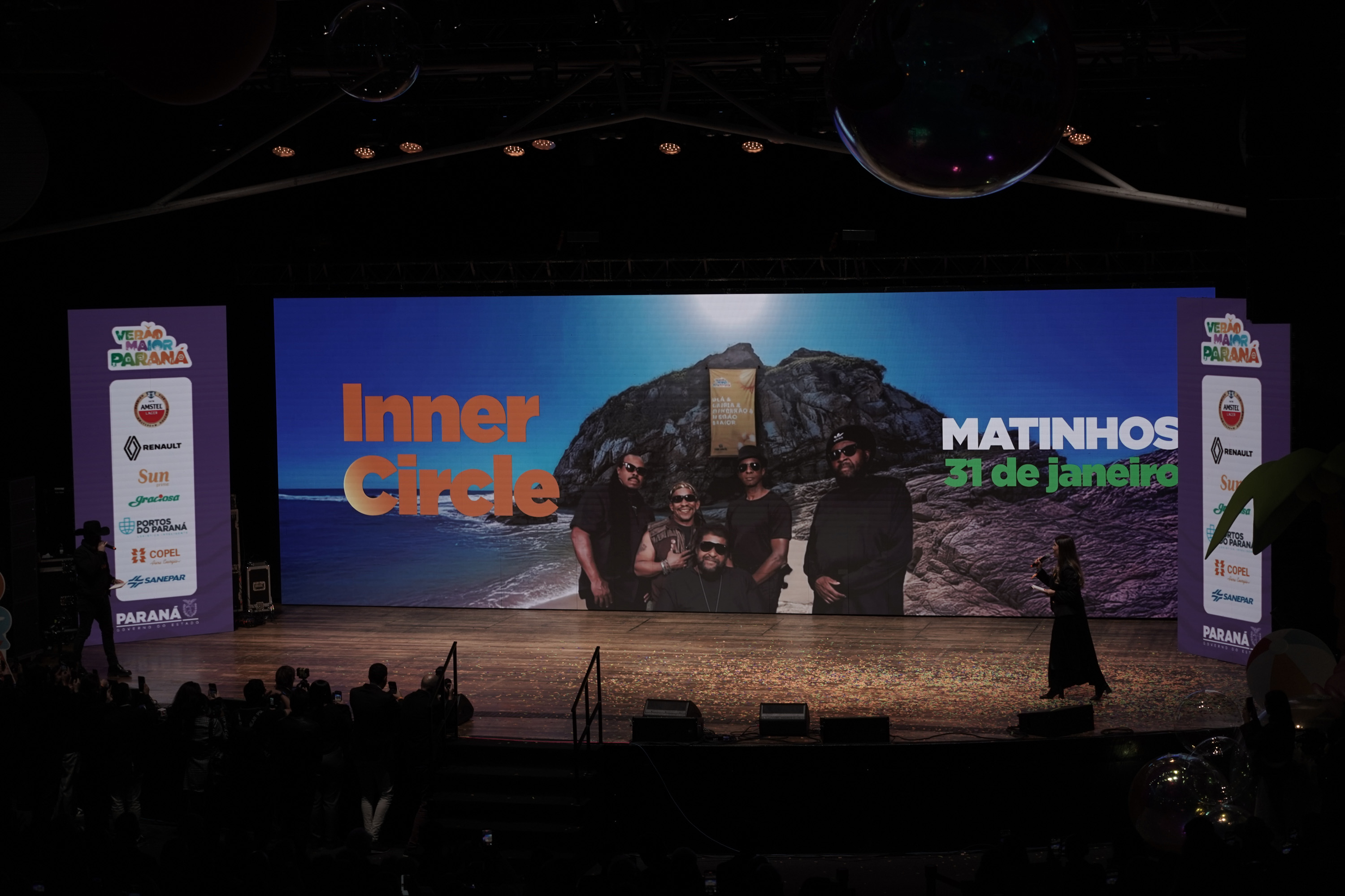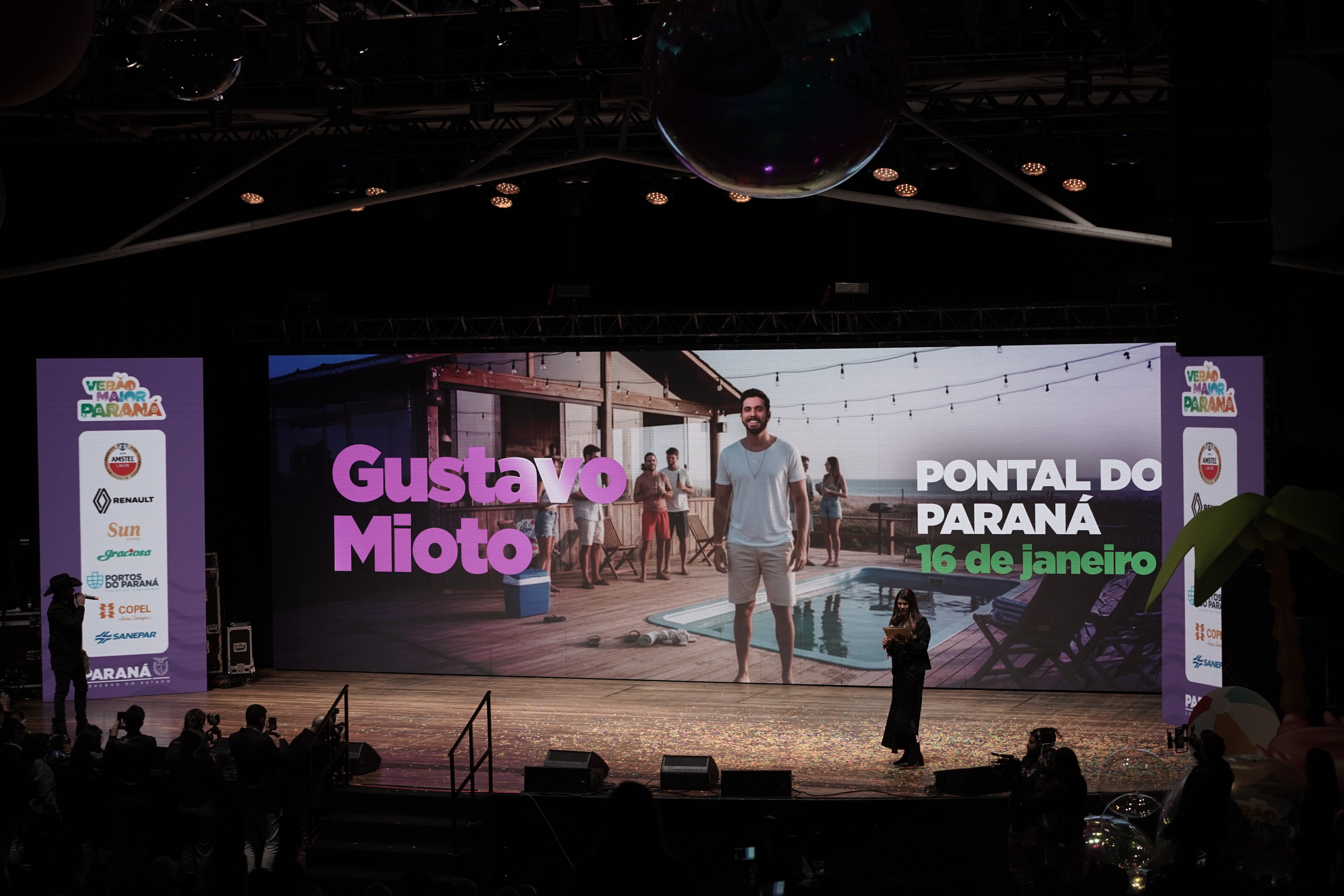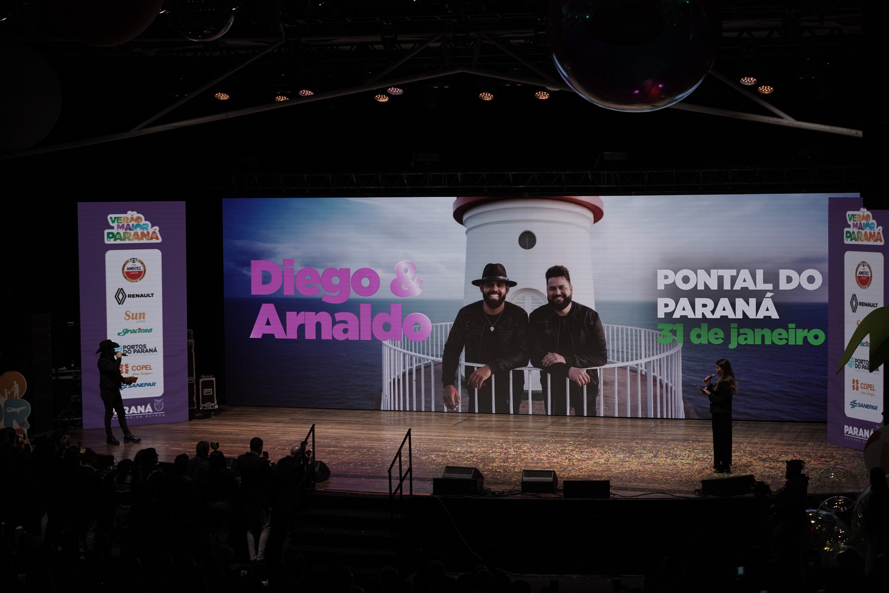 O Governo do Paraná anunciou nesta terça-feira (21) os nomes das atrações do Verão Maior Paraná 2026. São cinco finais de semana seguidos de espetáculos gratuitos, de 9 de janeiro a 8 de fevereiro. Entre as novidades estão shows nas quintas-feiras, atrações internacionais e palcos que devem ser maiores do que no ano passado. Os shows acontecerão nas praias de Matinhos e Pontal do Paraná e terão transmissão do SBT, Band, TVCI, Banda B e TV Paraná Turismo para todo o Brasil.