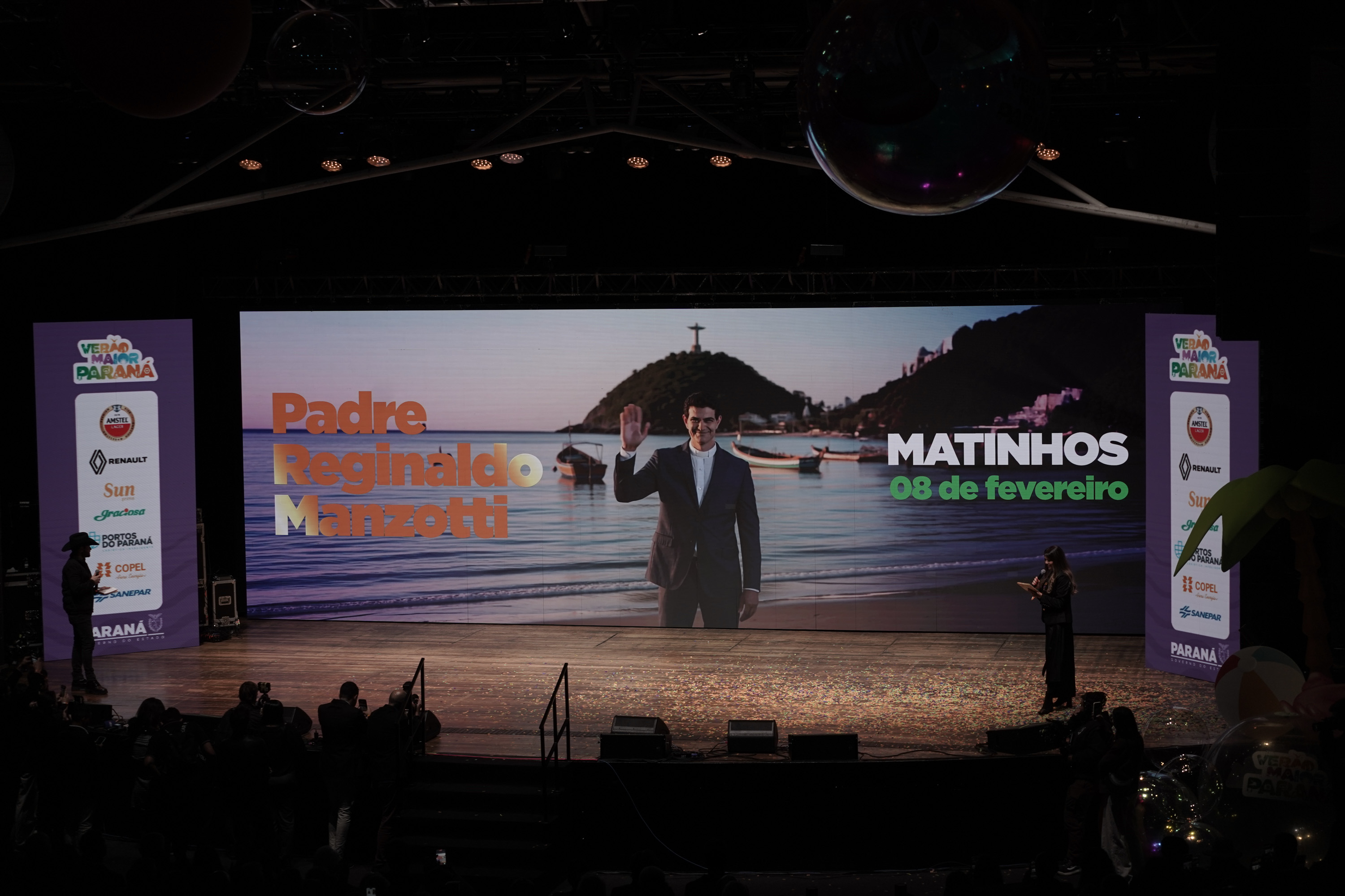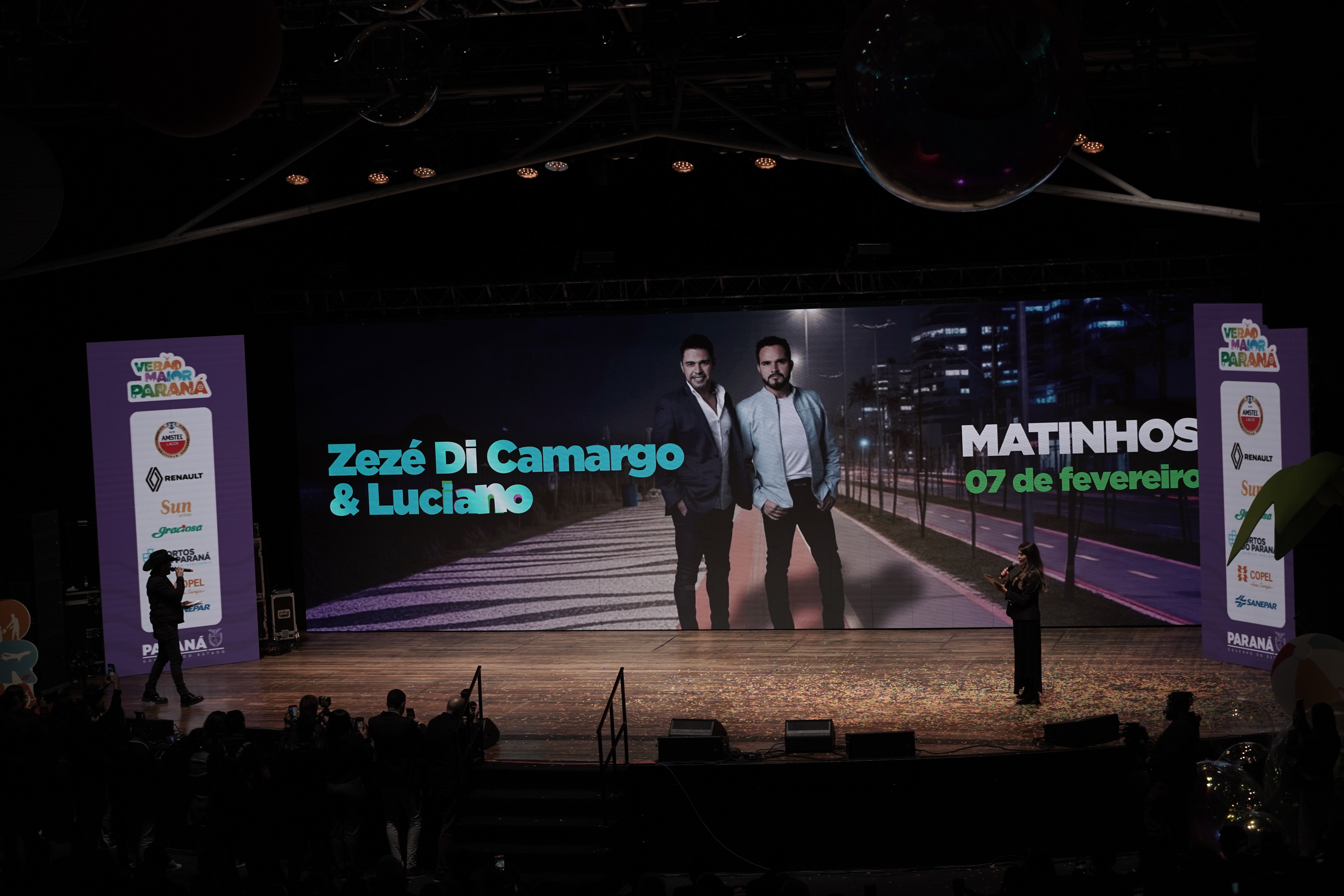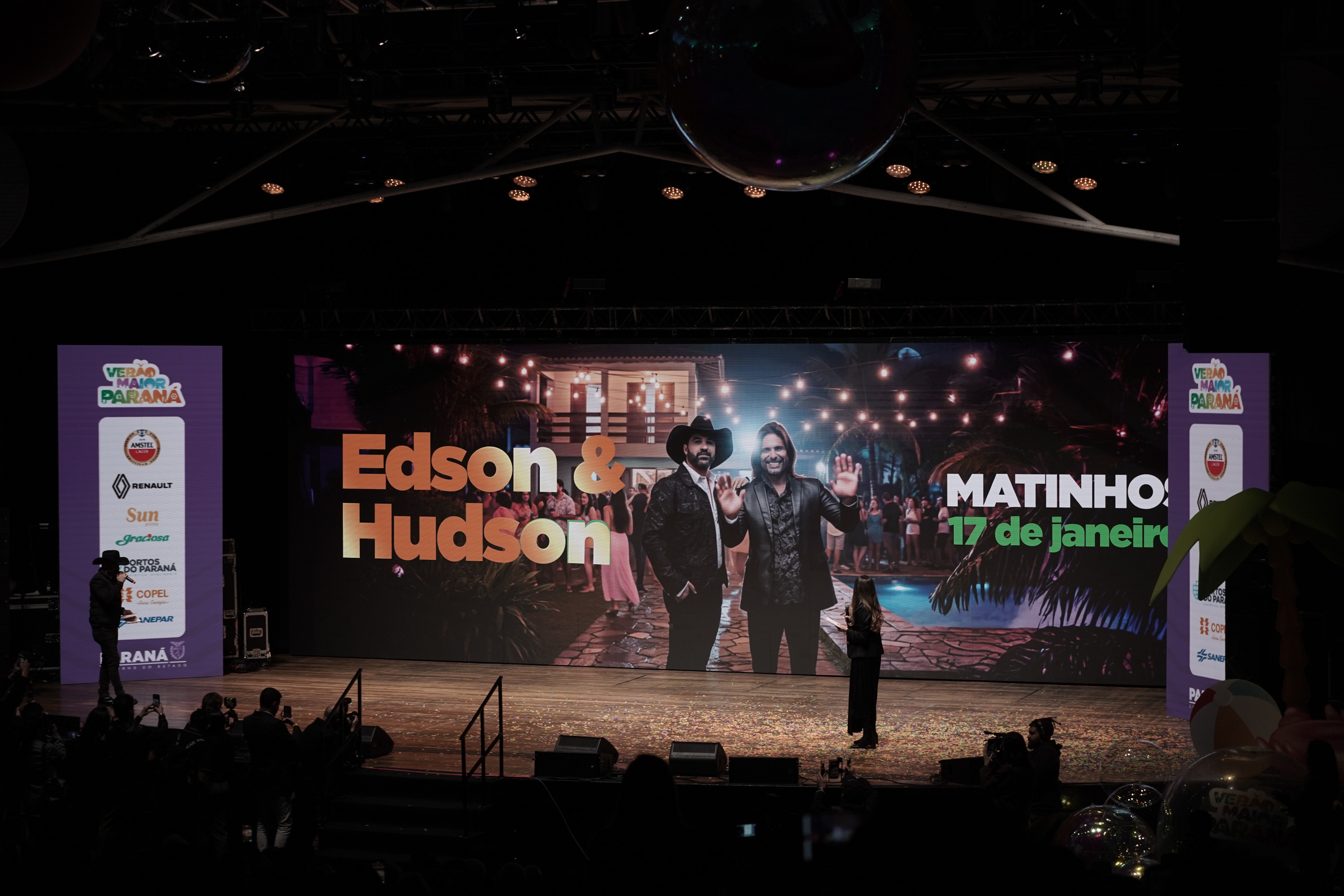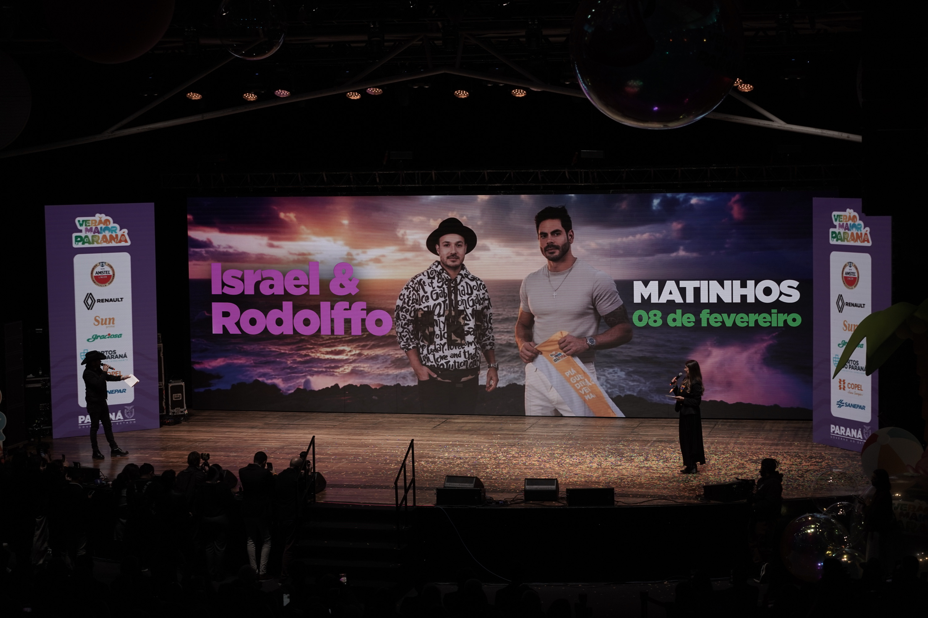 O Governo do Paraná anunciou nesta terça-feira (21) os nomes das atrações do Verão Maior Paraná 2026. São cinco finais de semana seguidos de espetáculos gratuitos, de 9 de janeiro a 8 de fevereiro. Entre as novidades estão shows nas quintas-feiras, atrações internacionais e palcos que devem ser maiores do que no ano passado. Os shows acontecerão nas praias de Matinhos e Pontal do Paraná e terão transmissão do SBT, Band, TVCI, Banda B e TV Paraná Turismo para todo o Brasil.